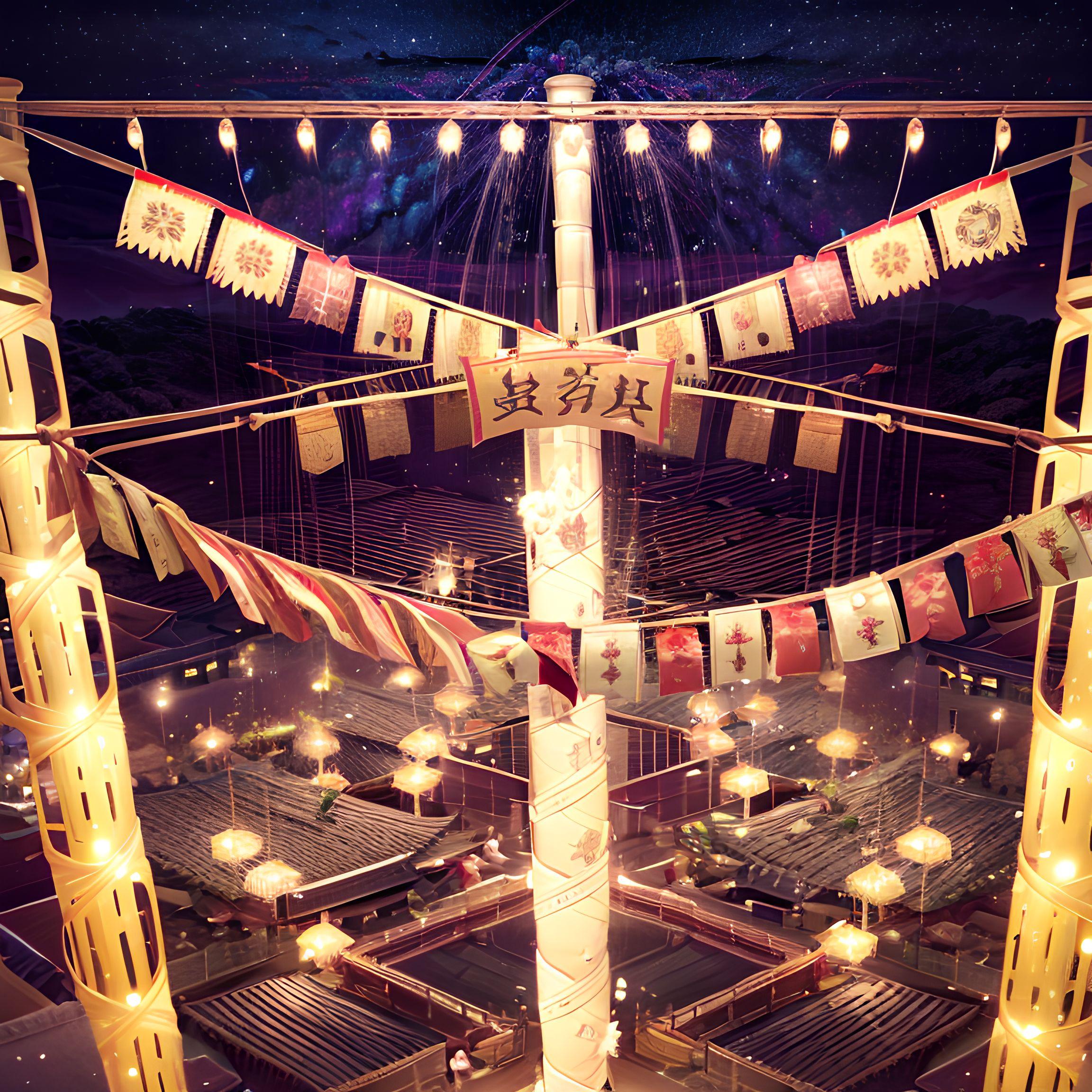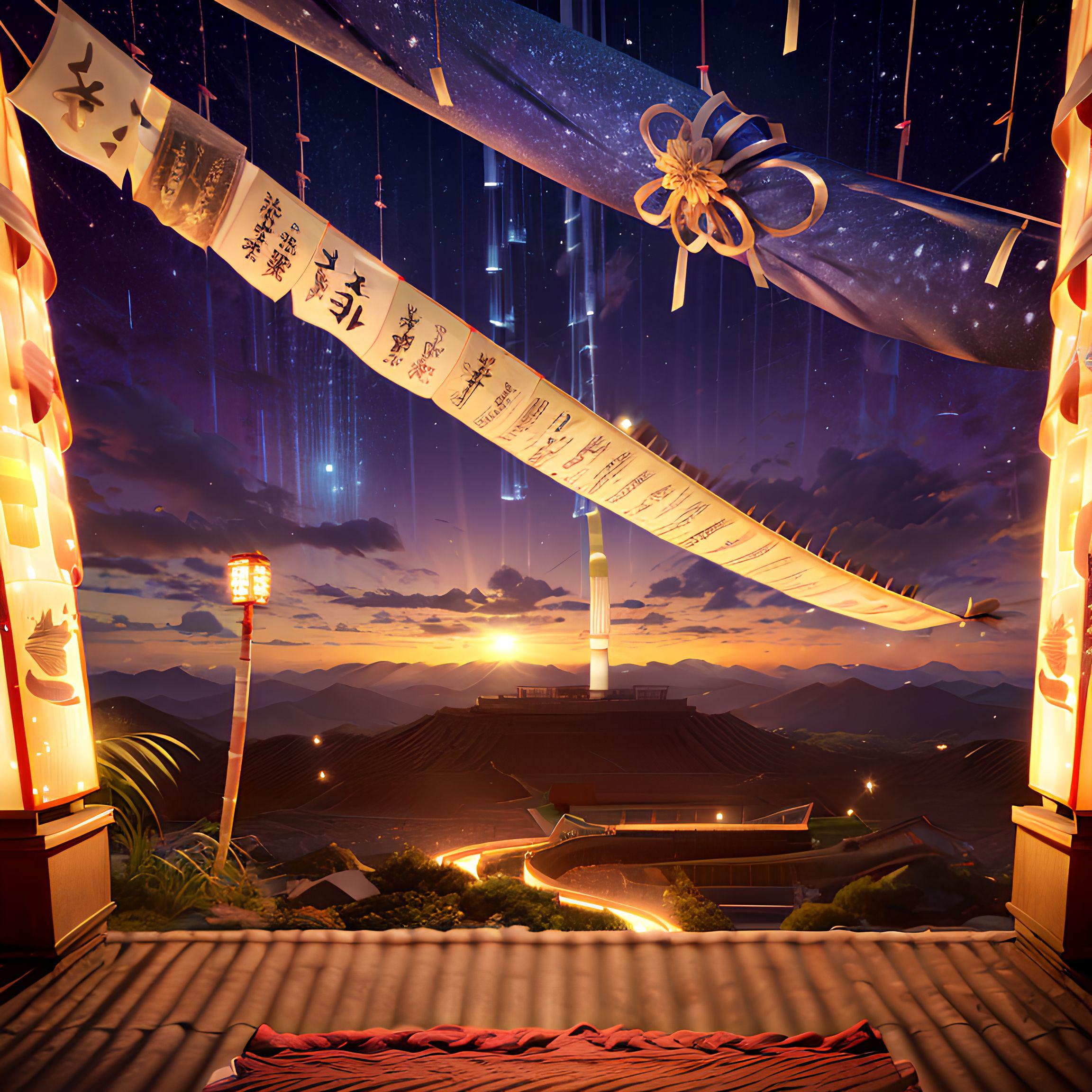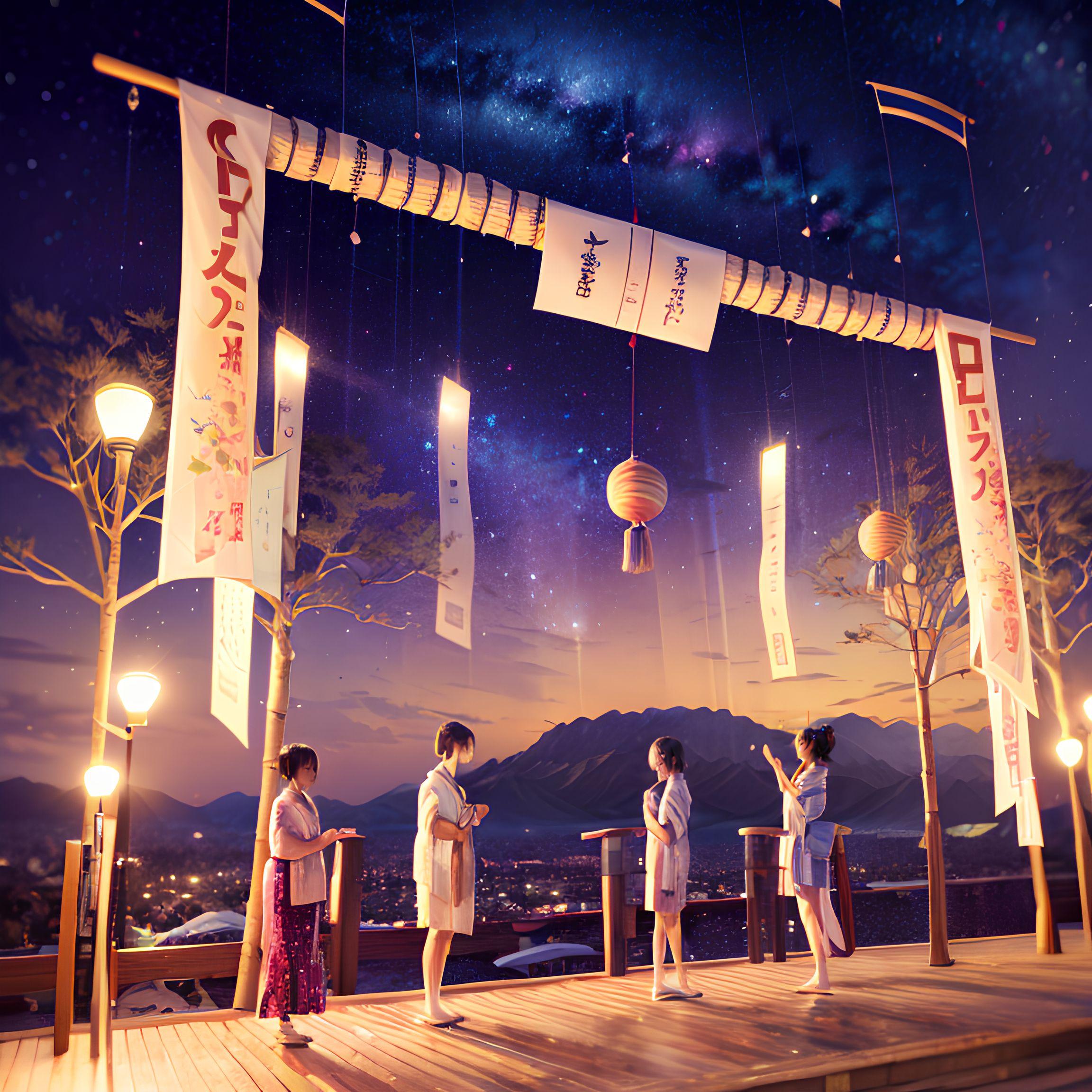 仮想の夜空に描かれた 七夕の魅惑的な風景