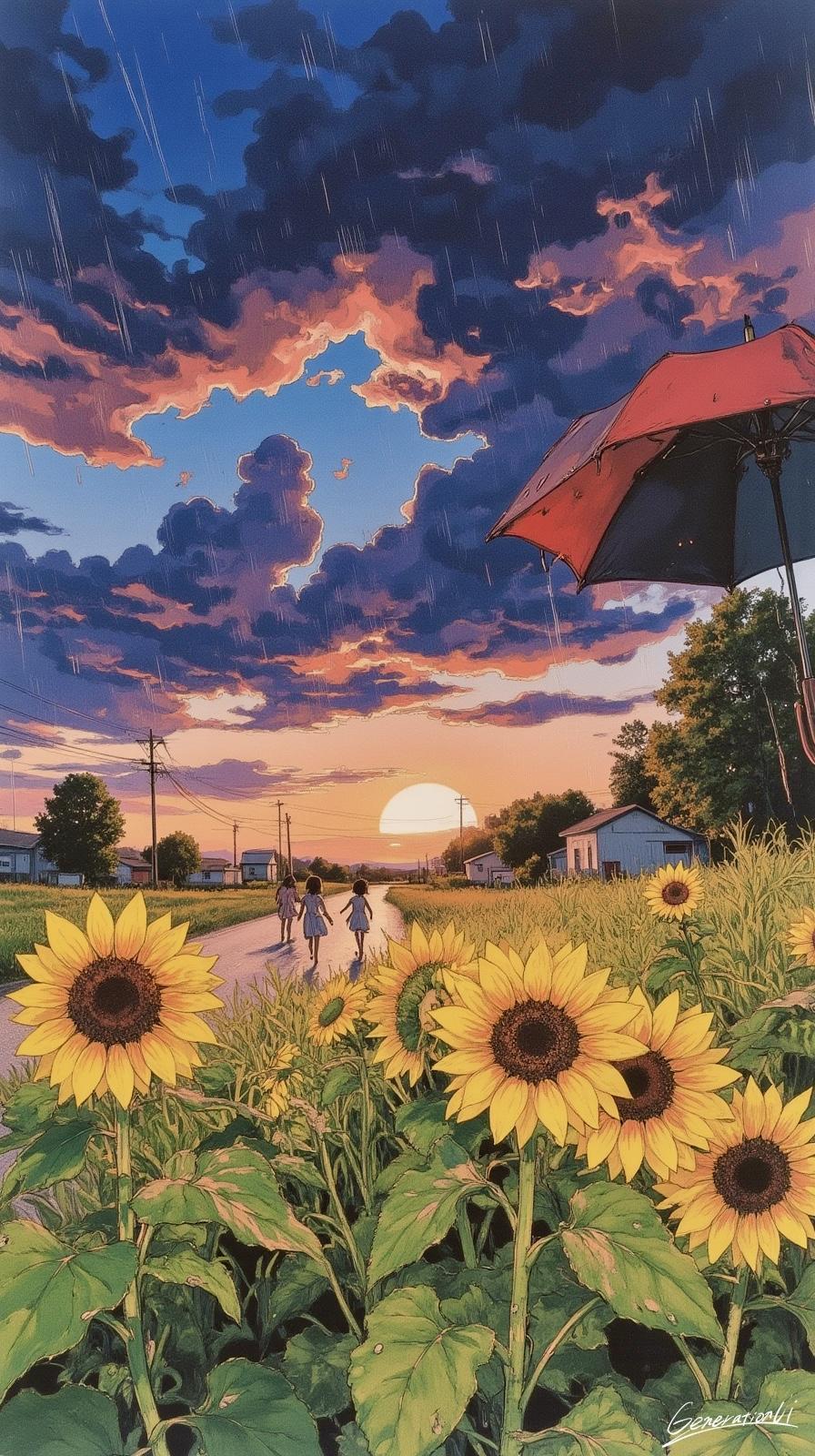 傘と夕焼けと夏の記憶/スマホ壁紙アーカイブ