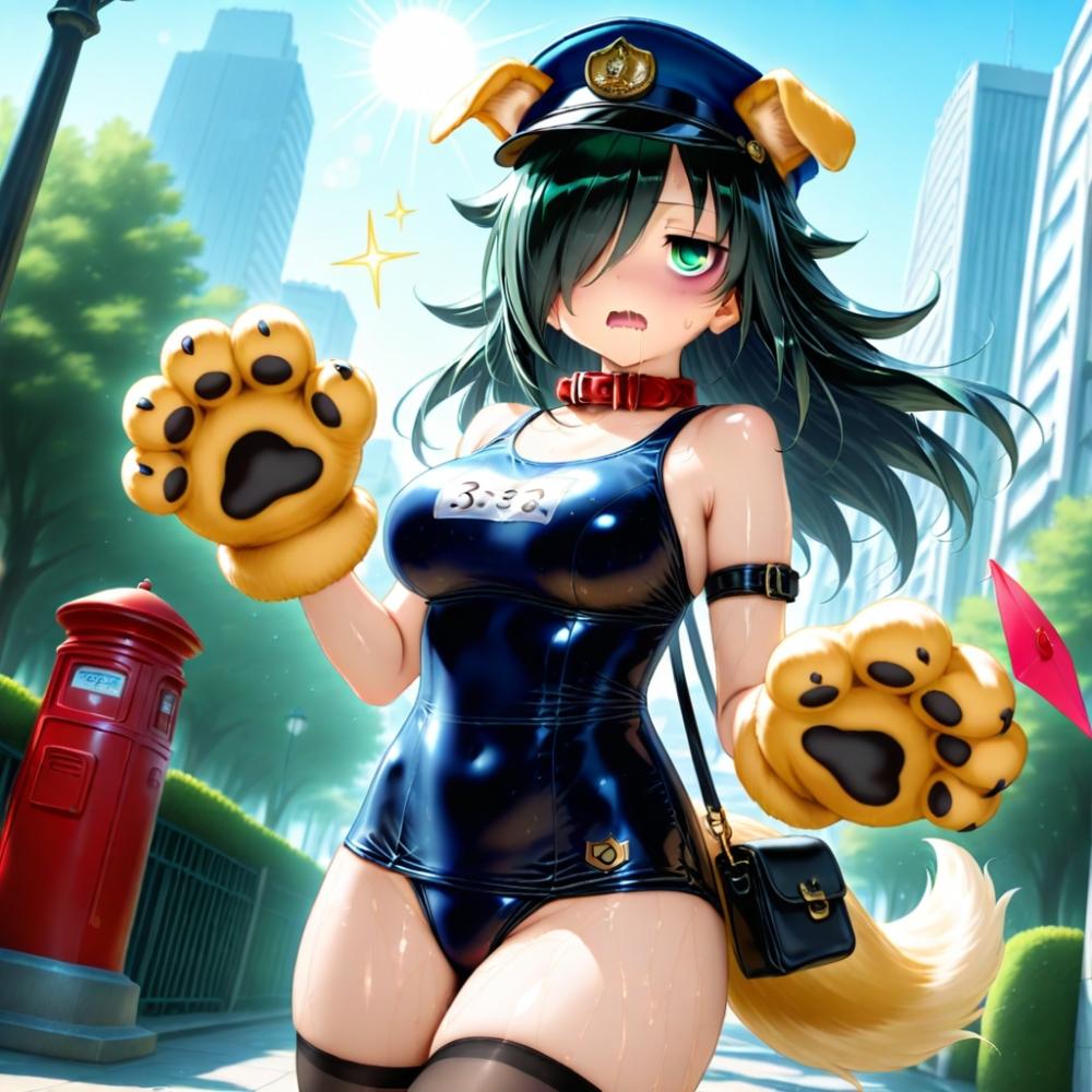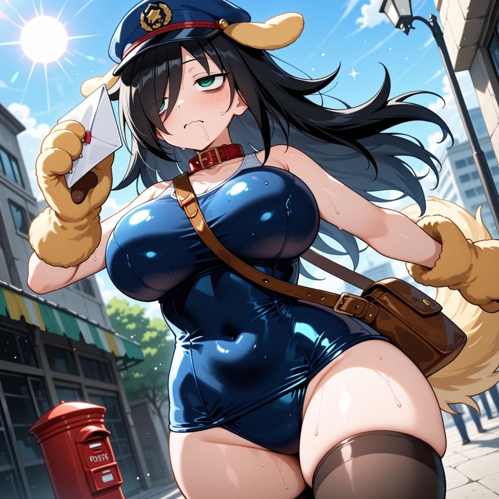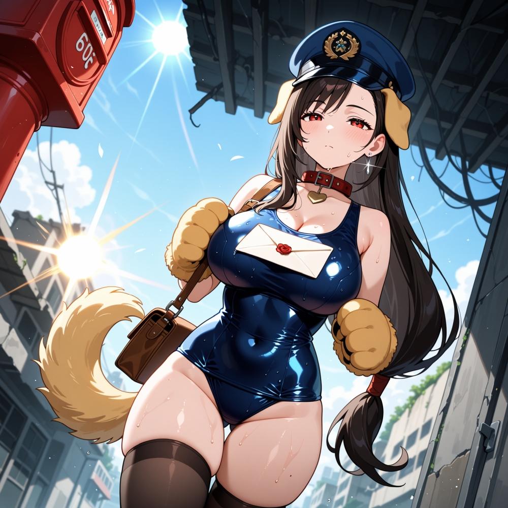 廃墟ショッピングモールで手紙を届ける郵便配達員スク水モン娘ゴールデン・レトリーバー娘コスプレ人妻達