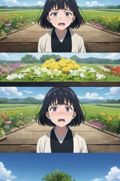 野菜,土下座,侍,涙,青空,アニメ風,黒髪