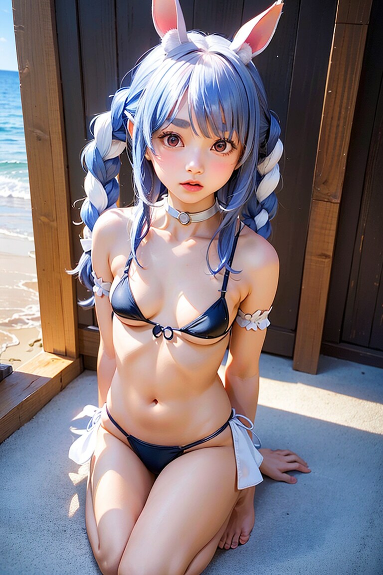 ビキニでVTuber_02_兎田ぺこらコス(黒ビキニ)