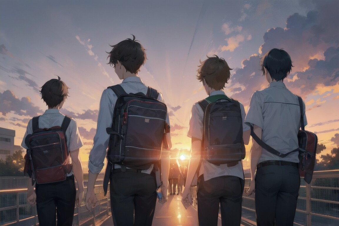 夕日に向かって、下校する男子高校生達(10枚)その2