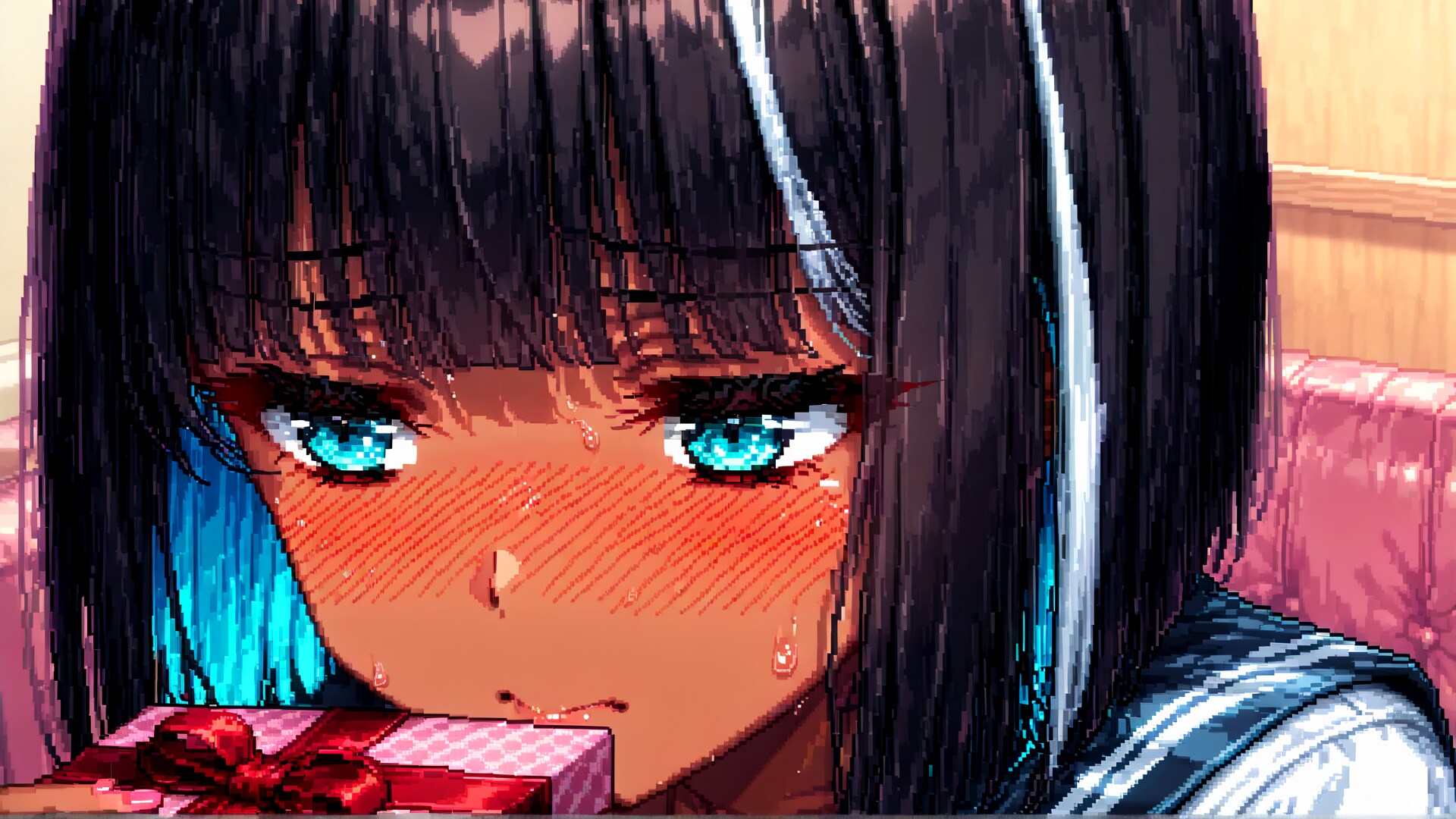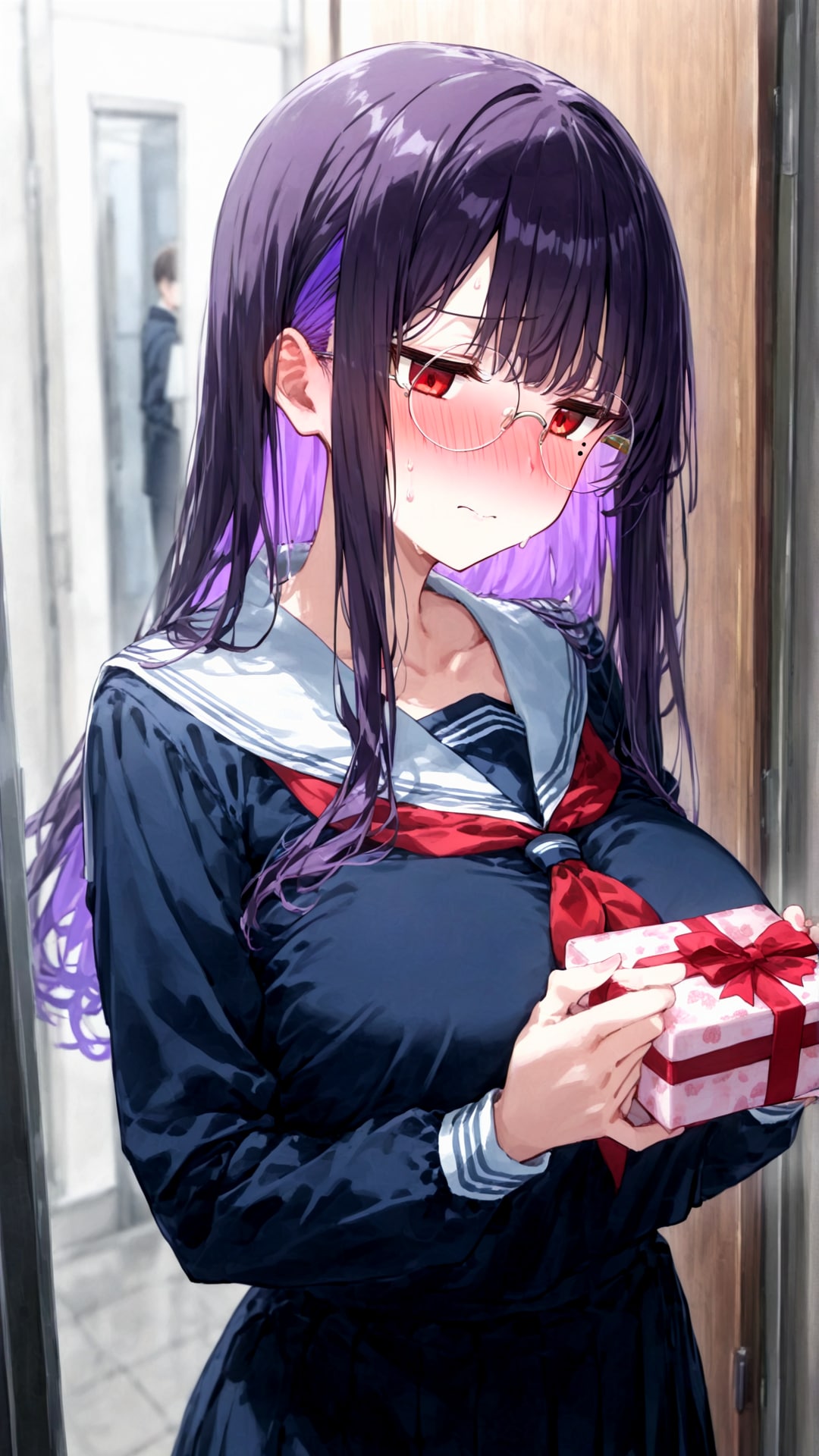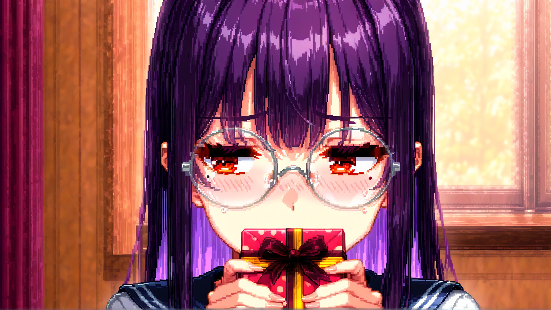ツンデレっぽいってなんだろなって思ったのでflustered,in heat,jitome,に加えてlooking at another,で直視せずにプレゼント渡すシチュエーションにしてみることに