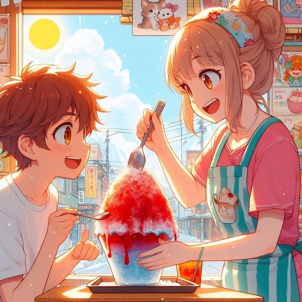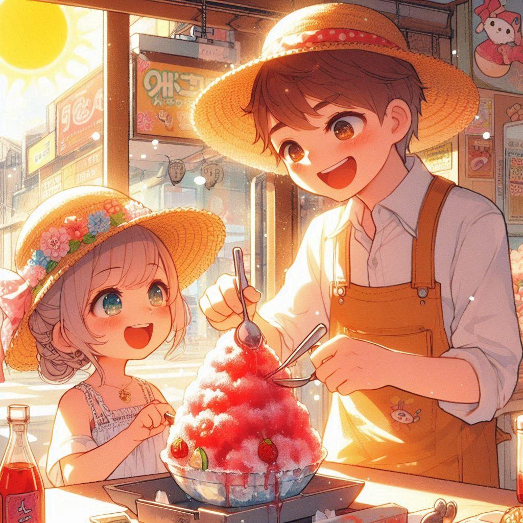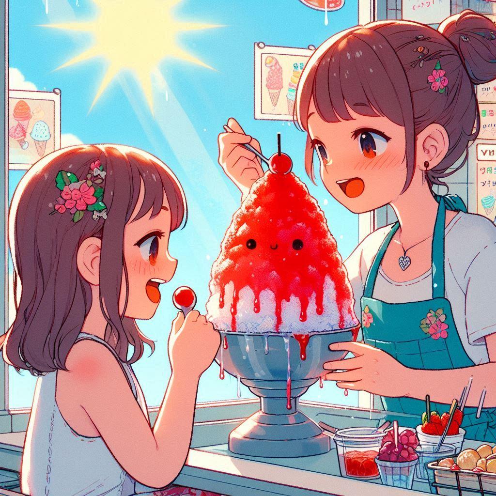 赤いシロップがたっぷりとかかったかき氷が出てくると、妹の目がキラキラ輝いた。
