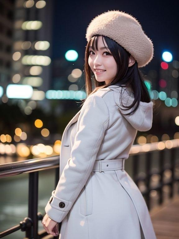 家にあるベレー帽を引っ張り出してきて、さっそく夜の街へ✨