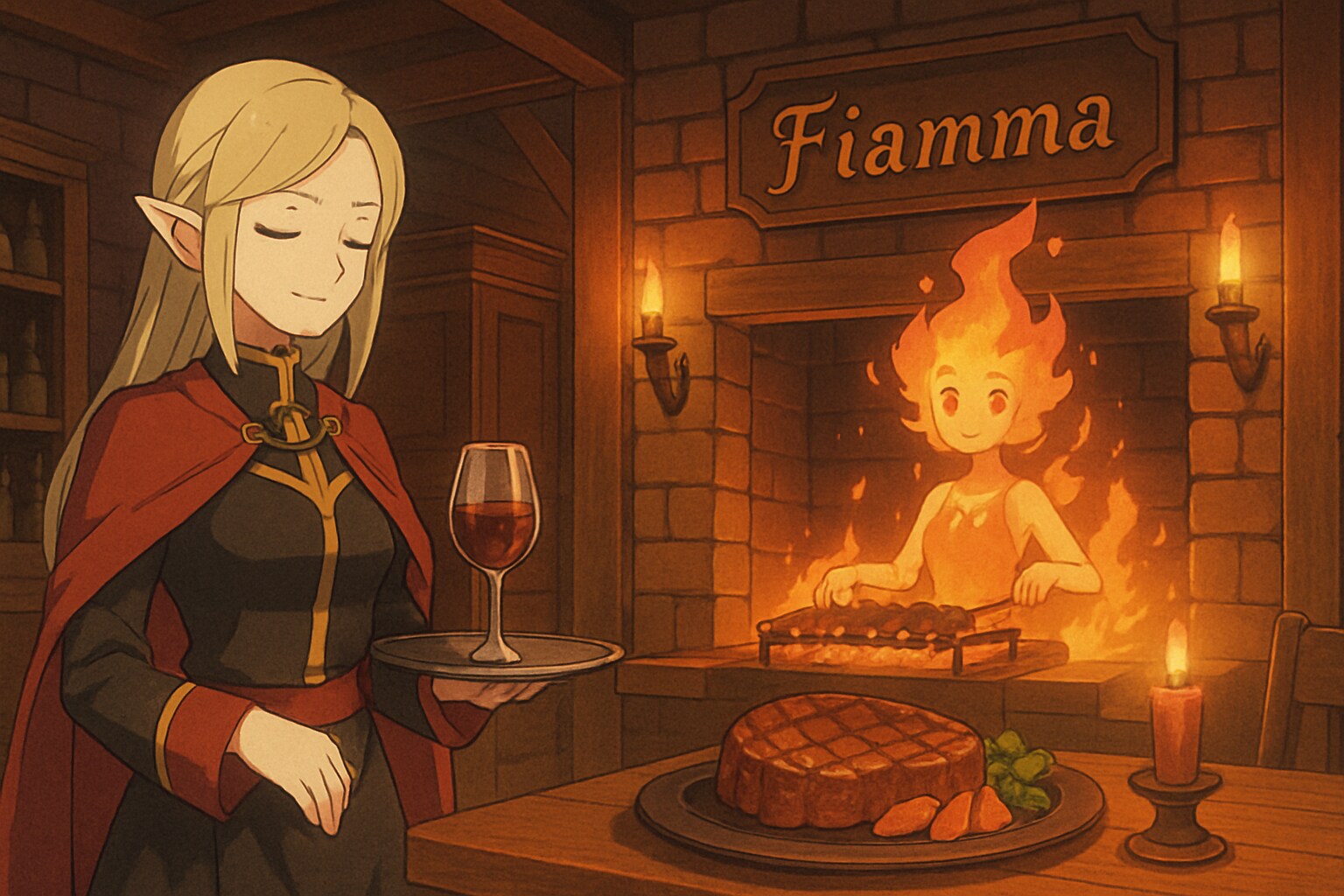 この店では、火の精霊《イグニス》たちが厨房で実際に火を操り、魂を込めて料理を焼き上げてくれるのです。