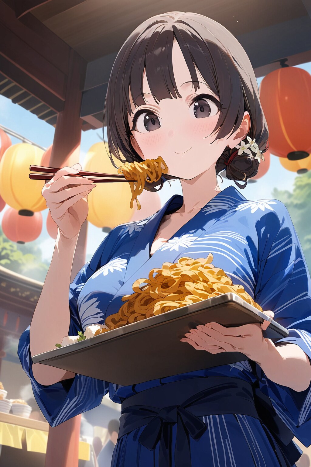 「やっぱりお祭りで食べる焼きそばは一味違うね♪」