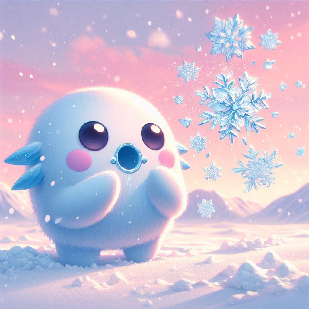 口から氷(雪)の結晶を吐き出す氷のもんすたぁ。