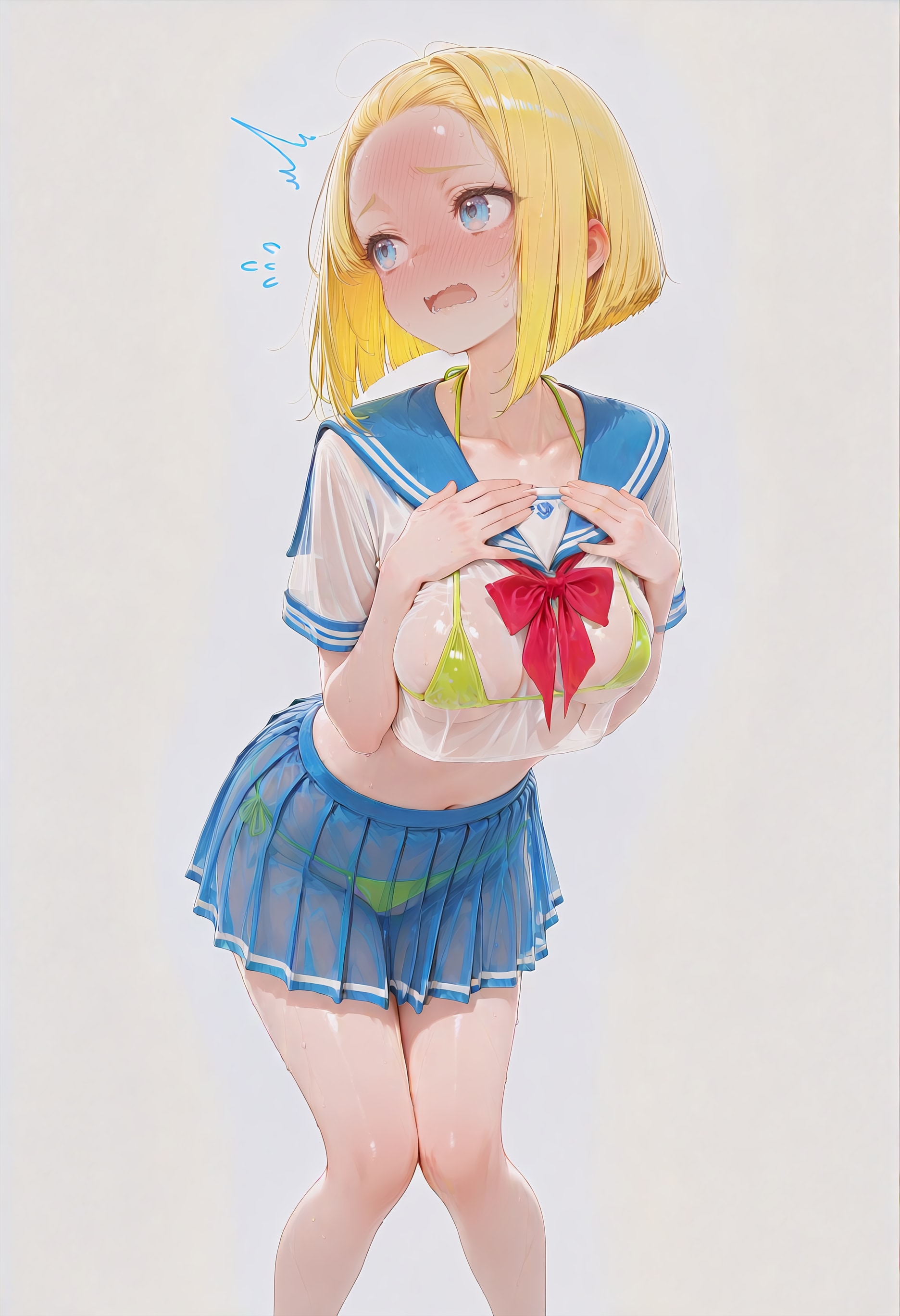 さらにその恥ずかシチュエーションを乗り越えて透けセーラーという頭の悪い服を脱いだらそもそも超マイクロビキニだわということに気付くまであと5秒。