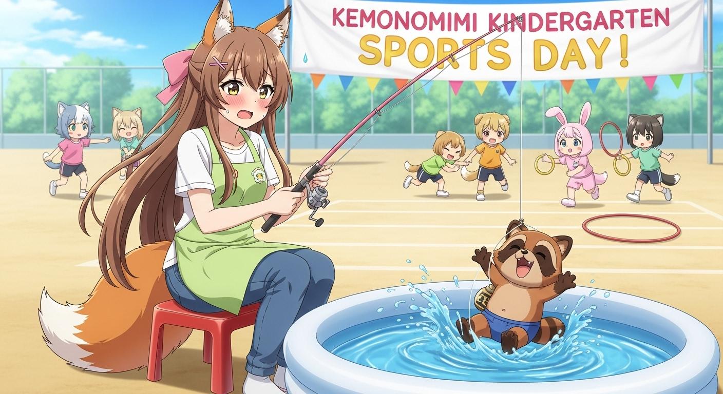 ケモミミ幼稚園の運動会(運動場)で釣り
