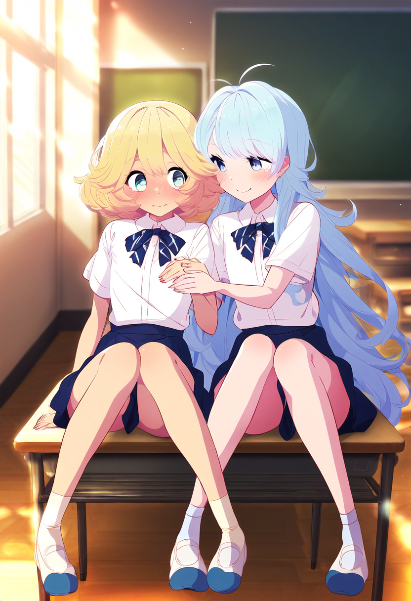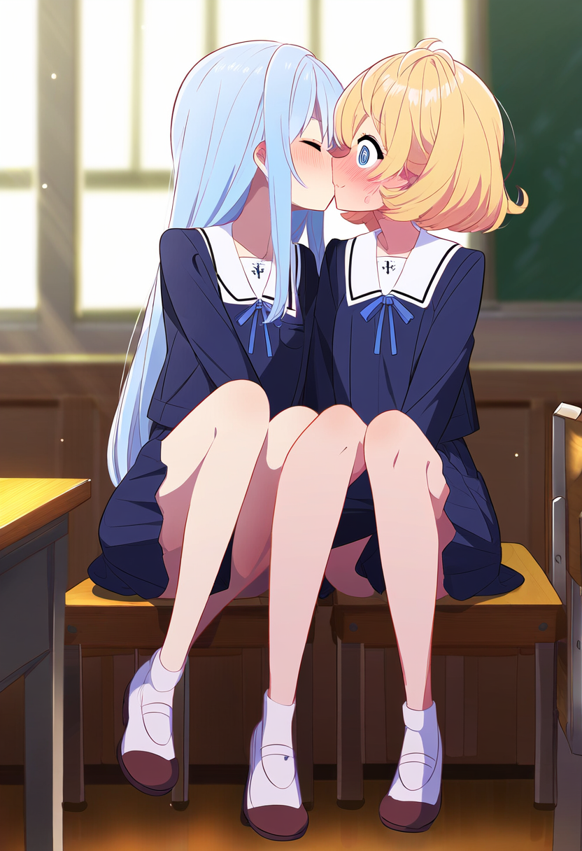 自分達以外誰も居ない教室、でもいつ誰が来るか分からないのにぐいぐい体を近付ける後輩。困っているけど満更でもない、そんな先輩の心情を感じ取って唇を重ねた…