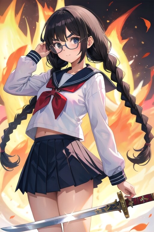 燃え盛りし学校を背に剣斬せし三つ編み少女