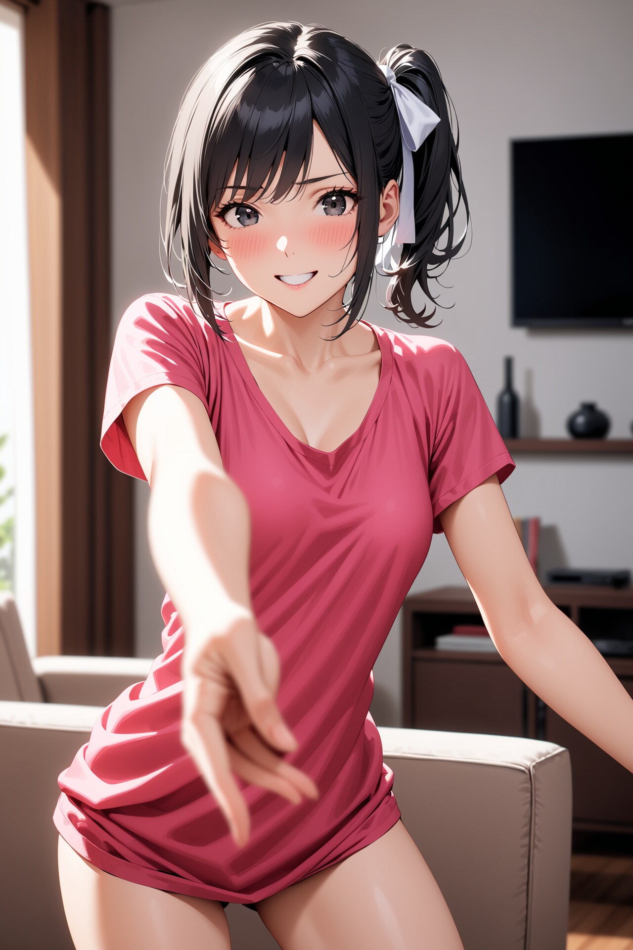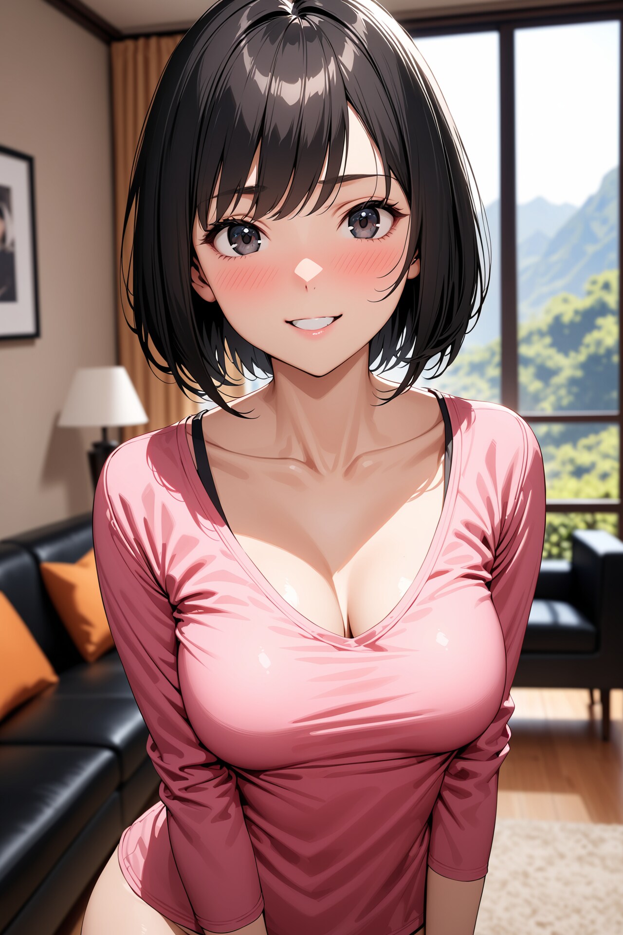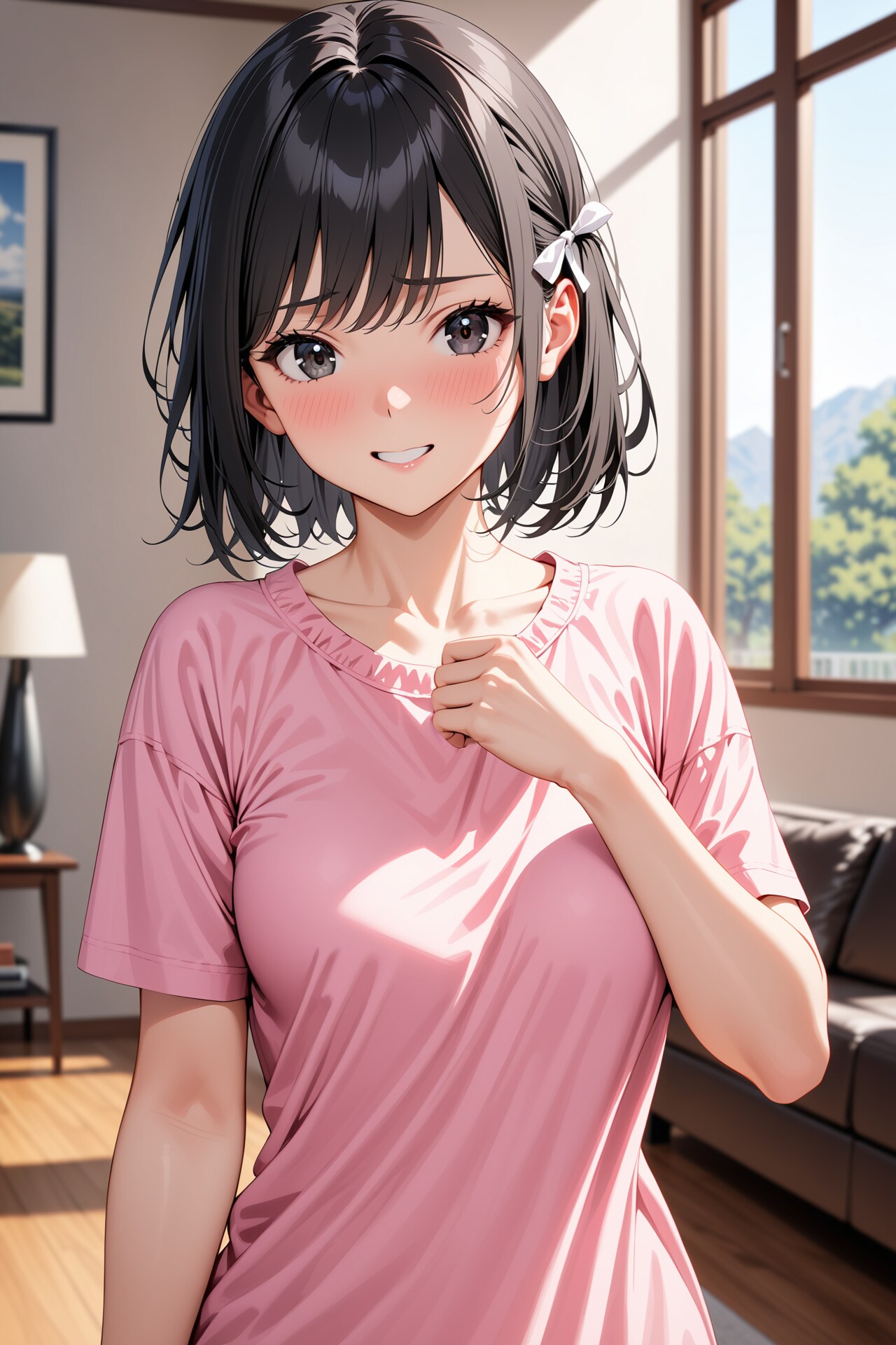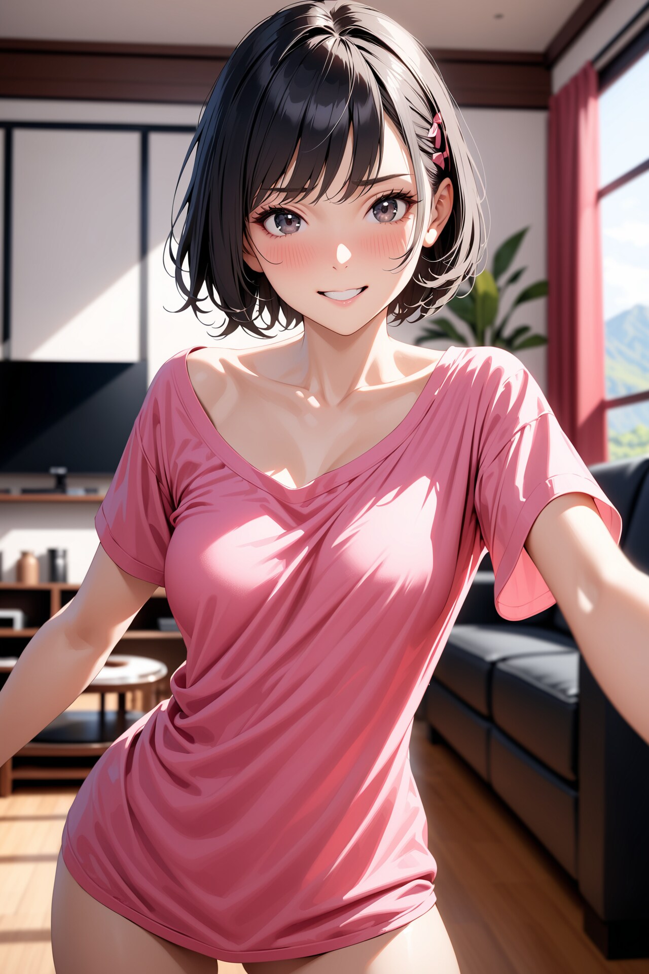 そこで今回は、黒髪+ピンクシャツに鎖骨の要素を追加して生成してみました。