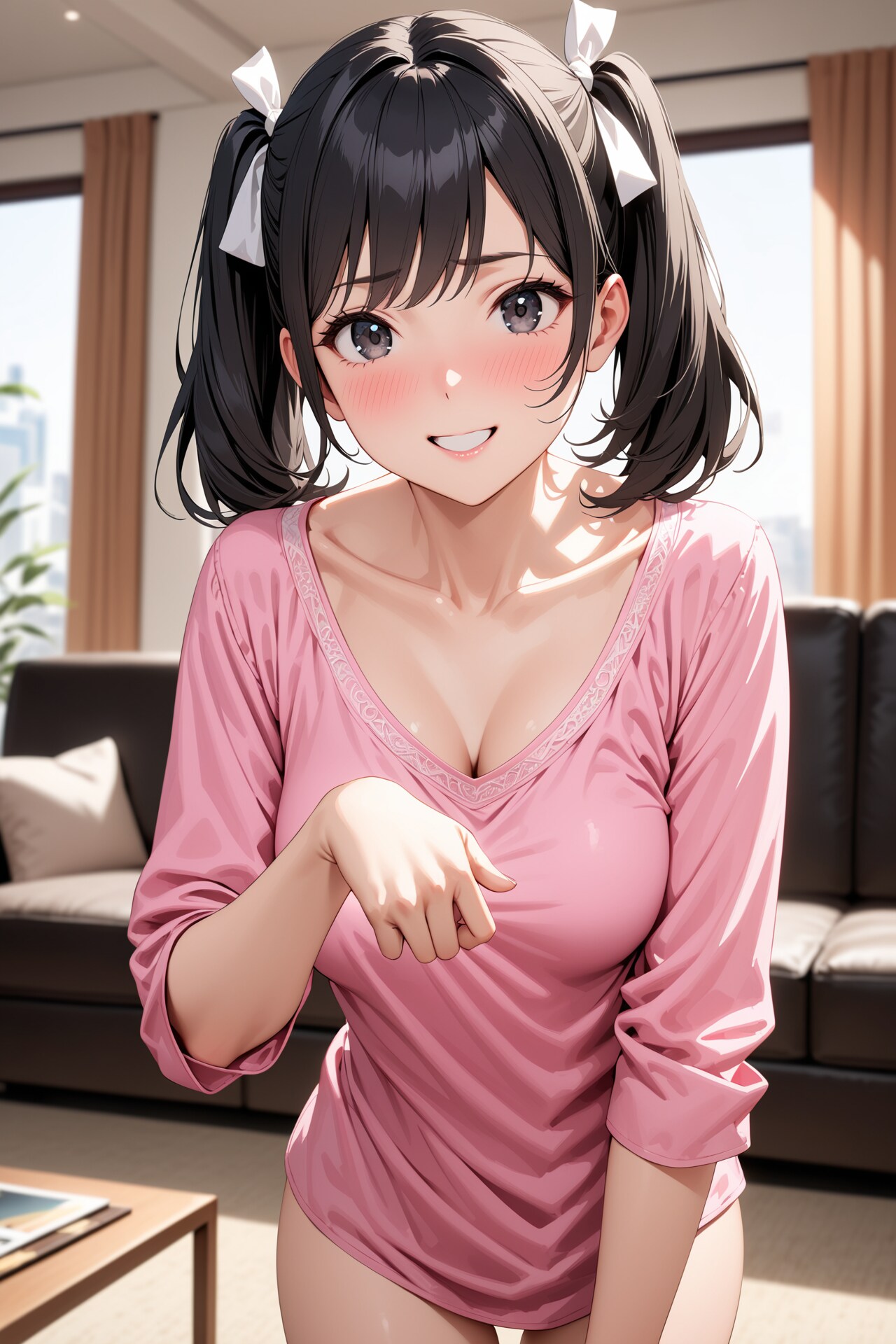 シャツの胸の谷間のところに人差し指を引っかけて、クイッっと引っ張ってみたくなりますw