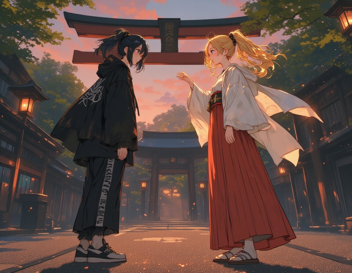 【樹海のかみさま】神社の黄昏、漆黒と黄金の啓示