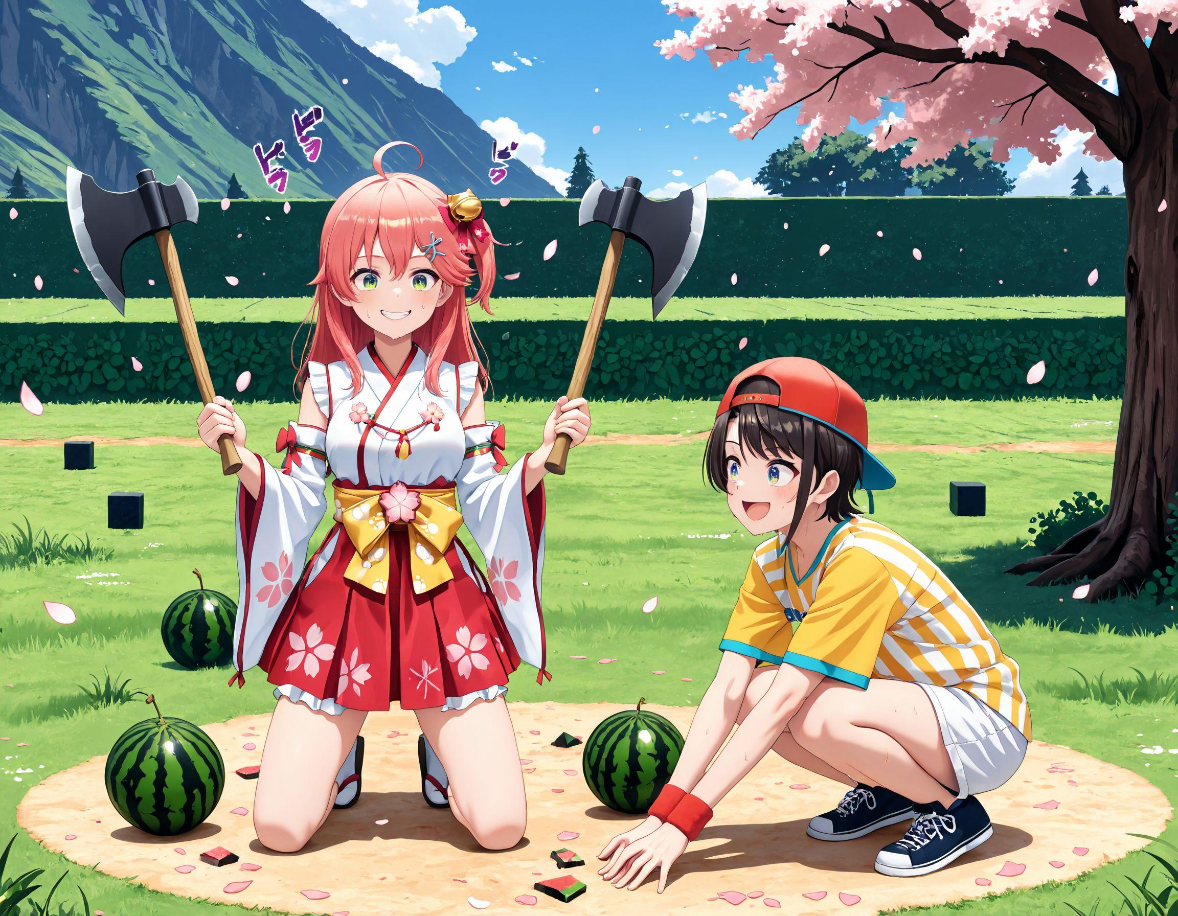 スイカのクソ錬金術に魅入られたアヒルと巫女(ヽ''ω`)✨