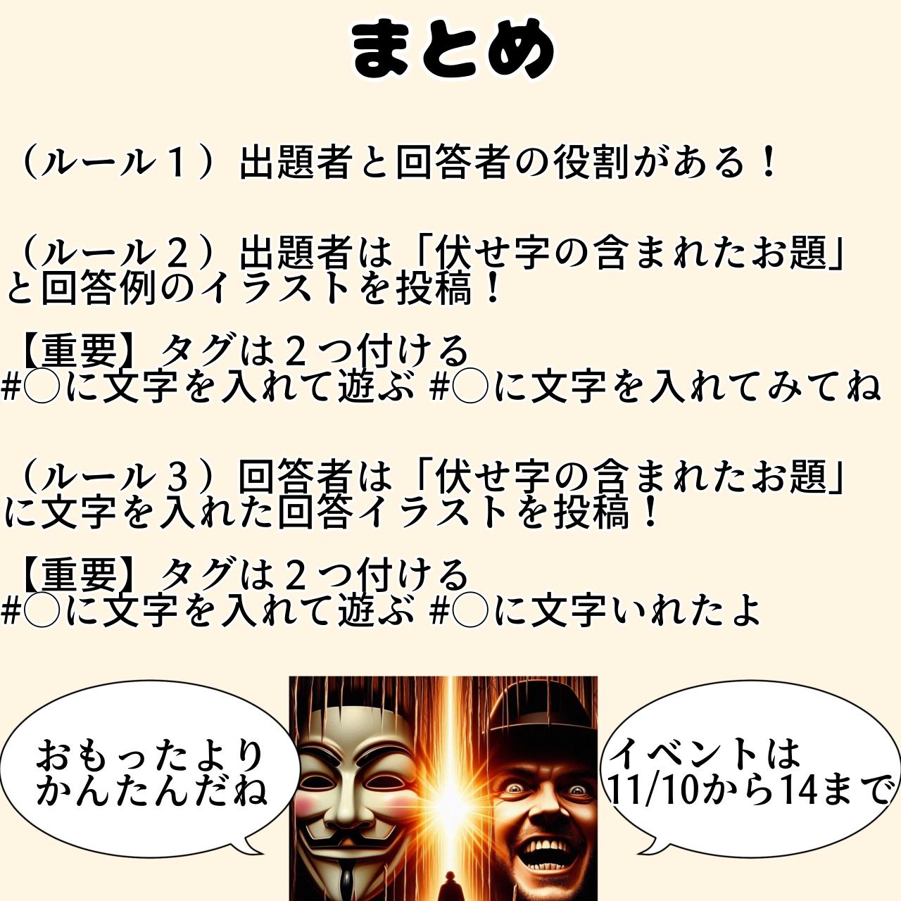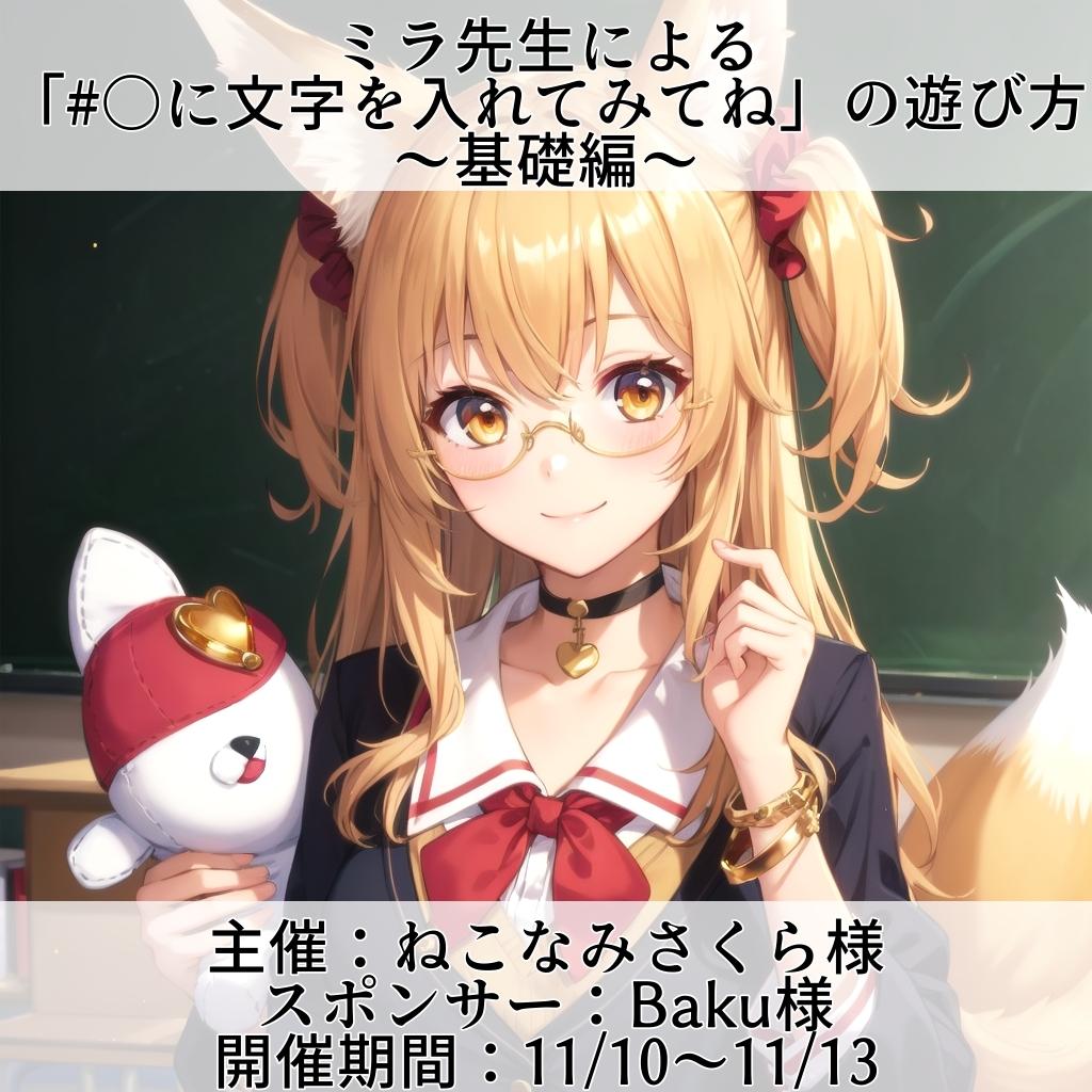 分かりやすい説明で、イベントに参加しよう!という思いが生まれ、お題を提供するのが楽しいです。眼鏡をかけたミラ先生、可愛くて最高ですね。ミラ先生のおかげで、眼鏡キャラを作ろうと創作魂にも火がつきました。