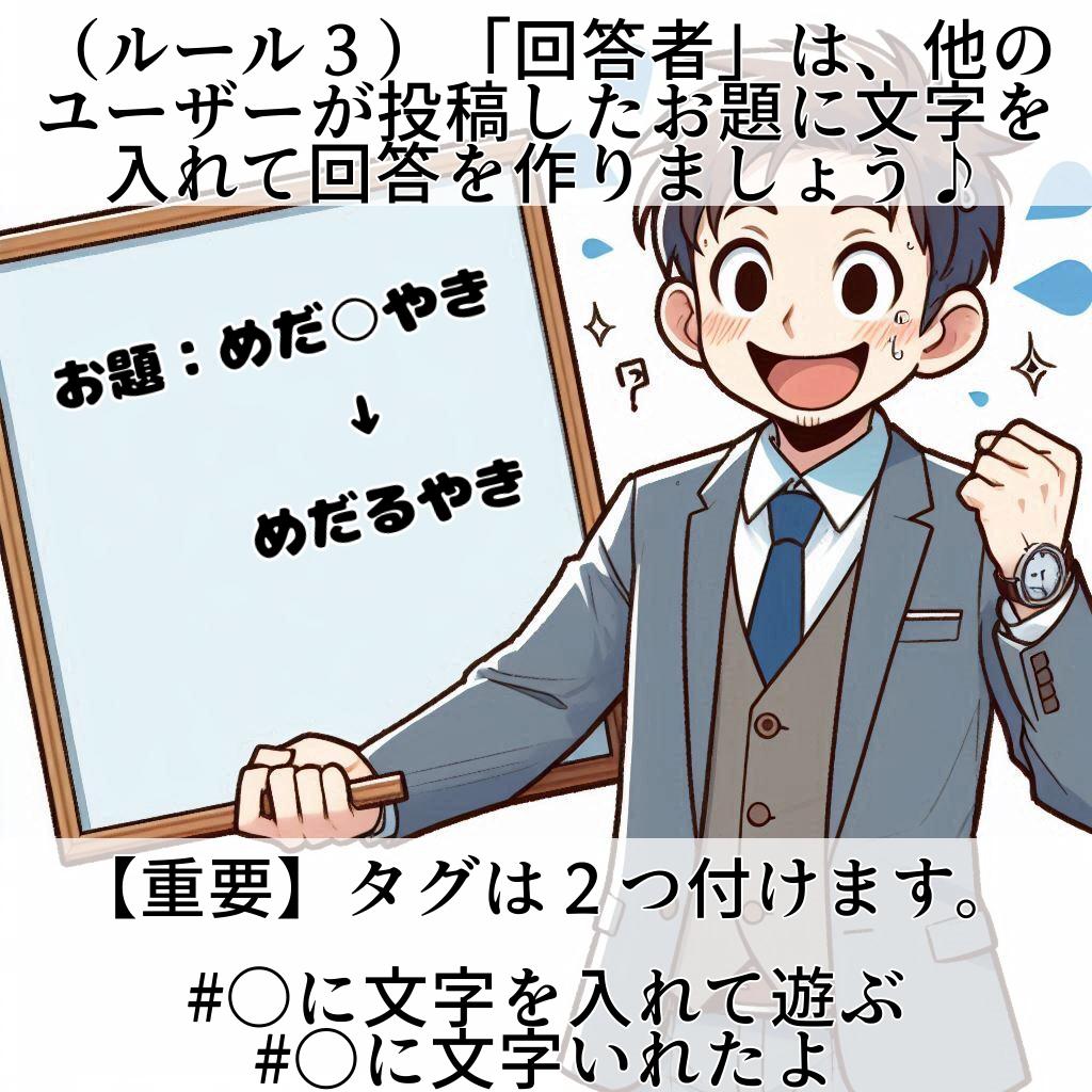 〇ん〇ん→鎮魂、めだ〇やき→メダイ焼き。簡単なお題ならいけそうです!
