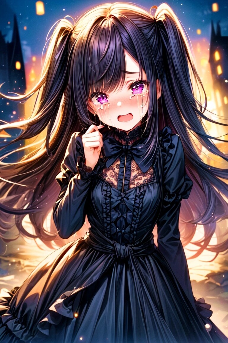 結果、プロンプトがかなり効いて、すごい泣き顔な、うちの子が出てきました見ているだけで悲しくなってきます…。AIの作画力に驚きました。涙の描写は修正すれば、自然になりそうです。悲しいイラストではありますが、表情に惹きつけられるものがあるように感じます。