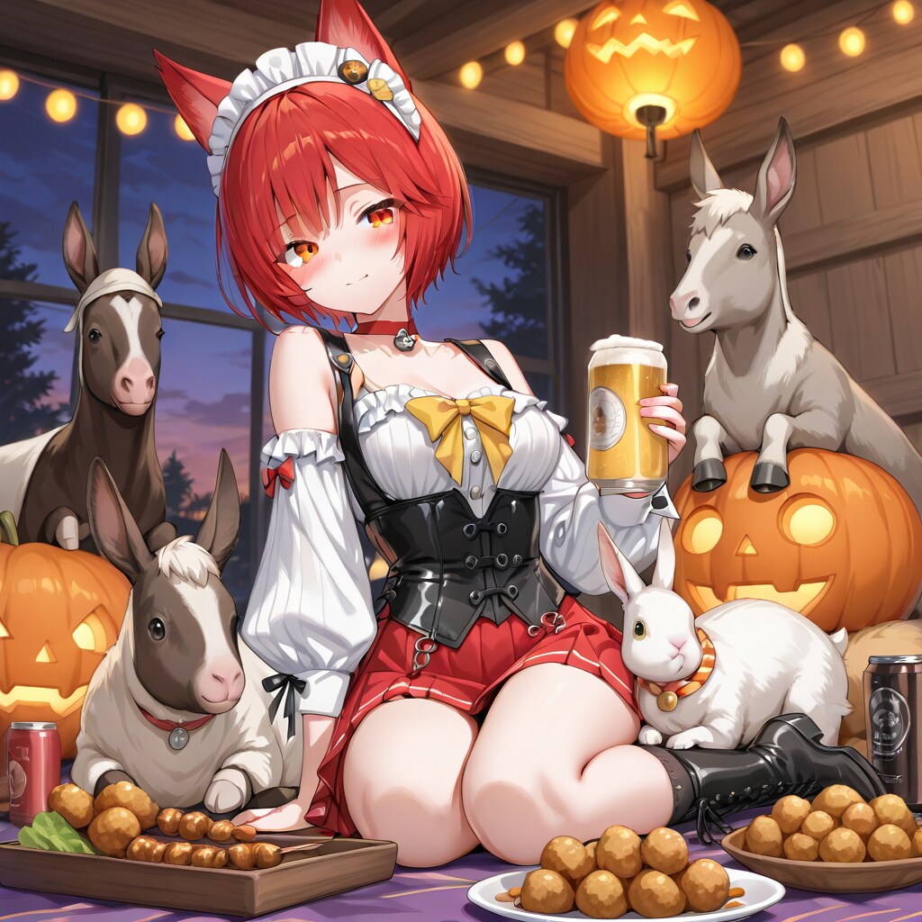 既にハロウィンパーティをしているロバと兎が友達系ケモ耳女子