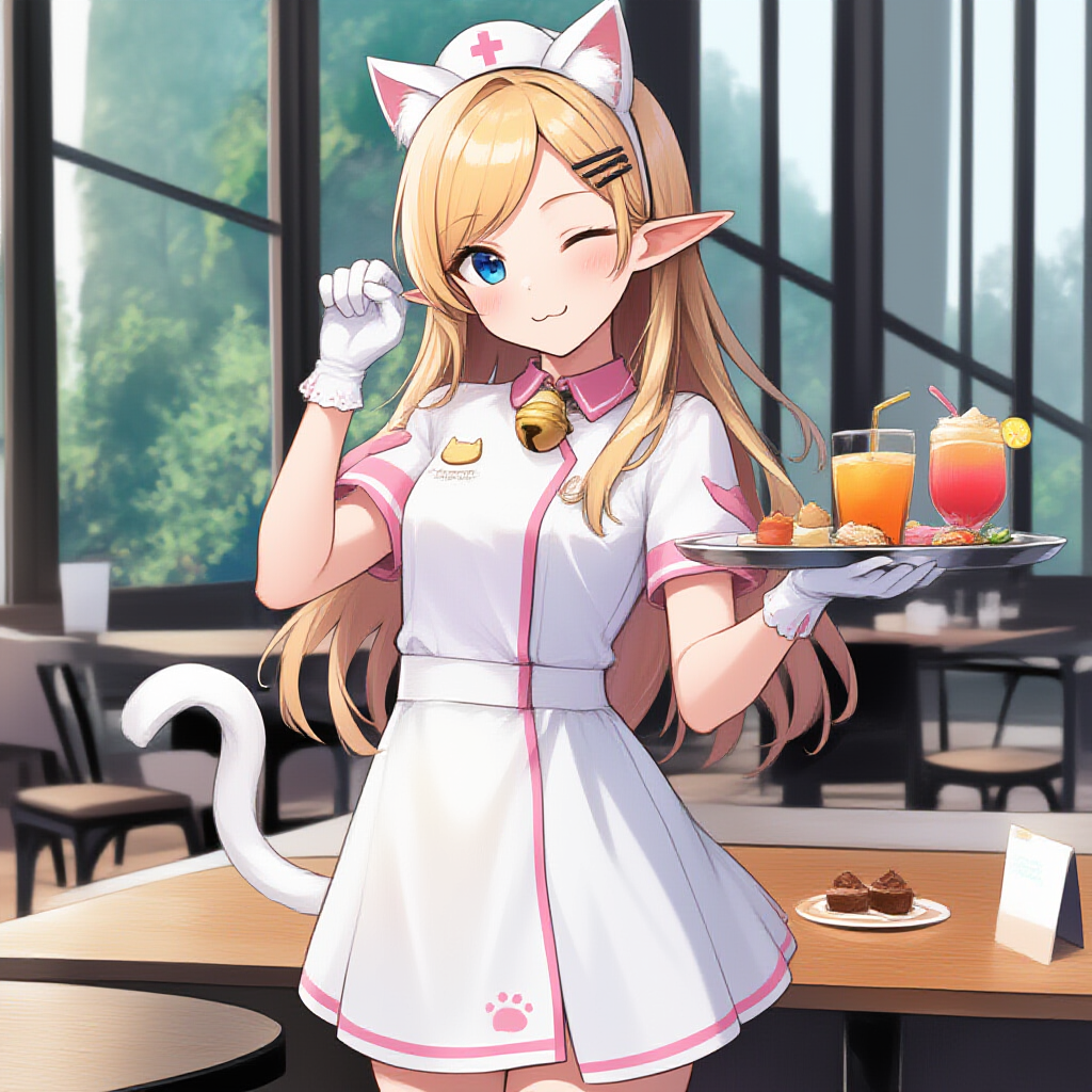 ⑧~はプロンプトの原型となった白猫ナースさんのイラストです。こちらはinpaint仕上げ。