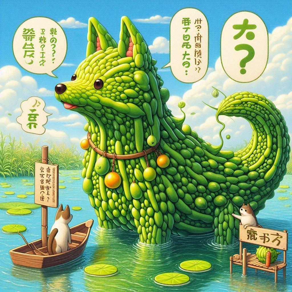 ゴーヤかな ゴーヤじゃないよ 緑犬