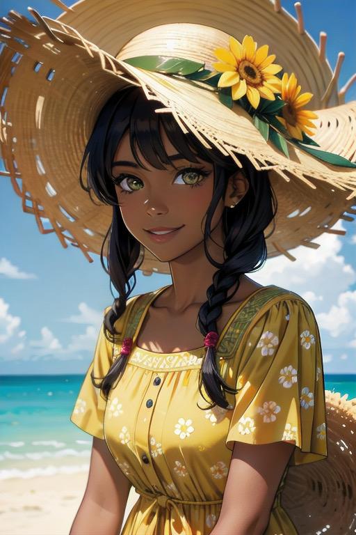 黒髪の褐色美女に黄色ワンピース、金髪の美女に白色ワンピース