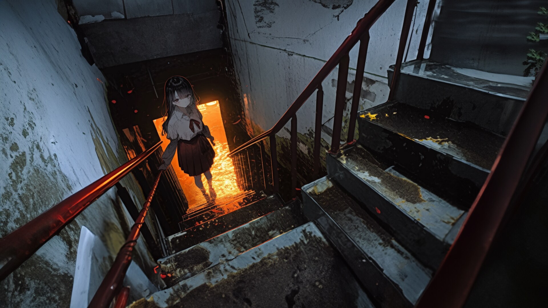 浸水した階段室