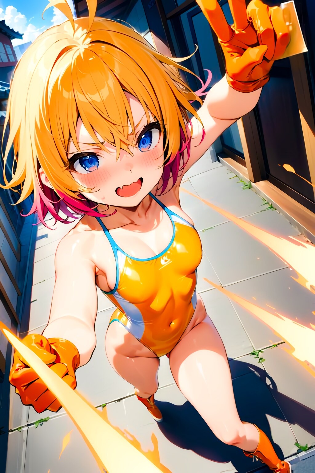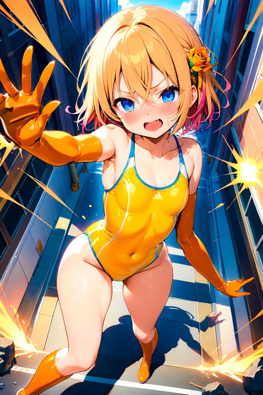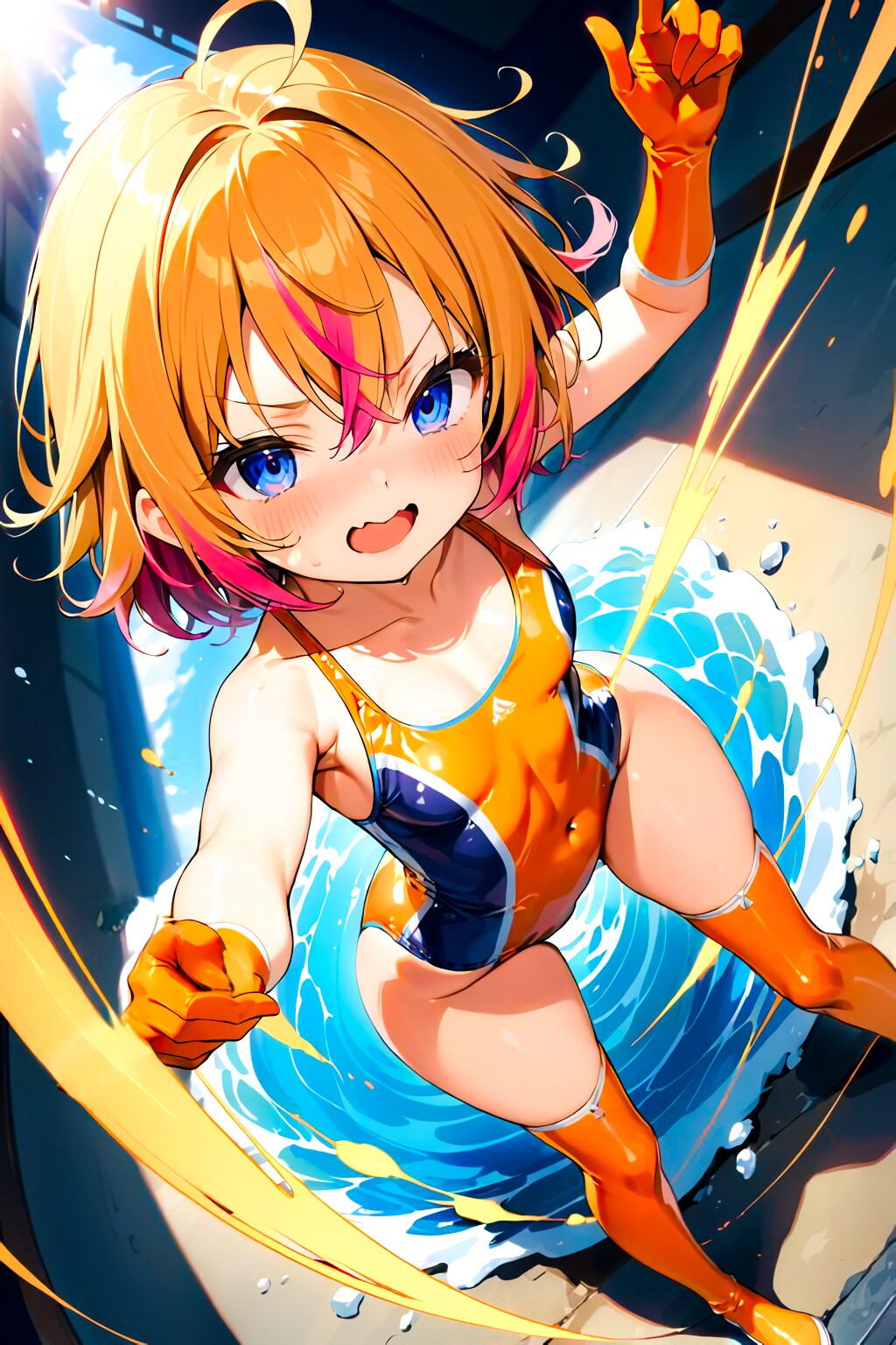 ちびっ子ギャルちゃんの正体は悪と戦う正義の競泳水着ヒロインなのでした!