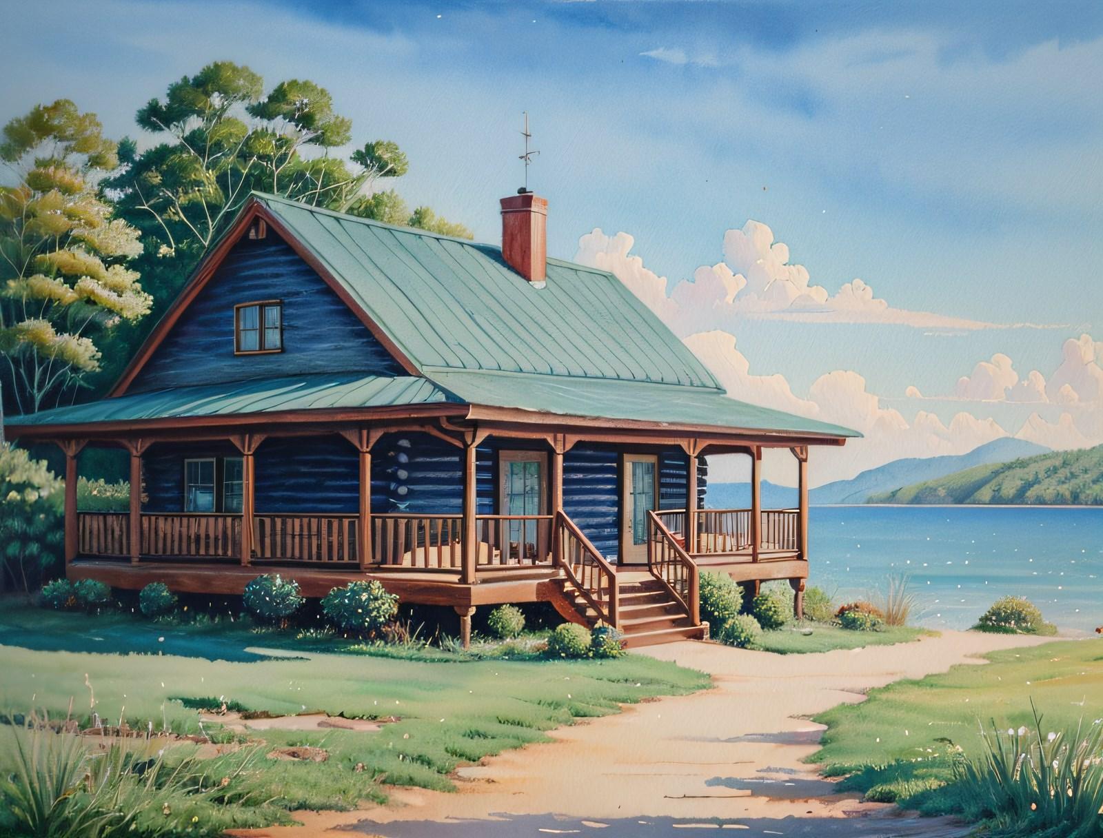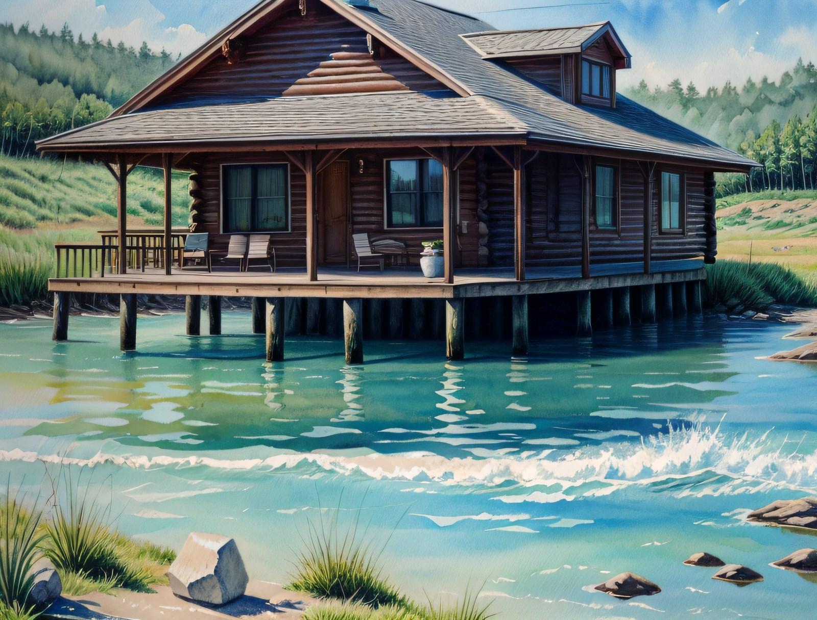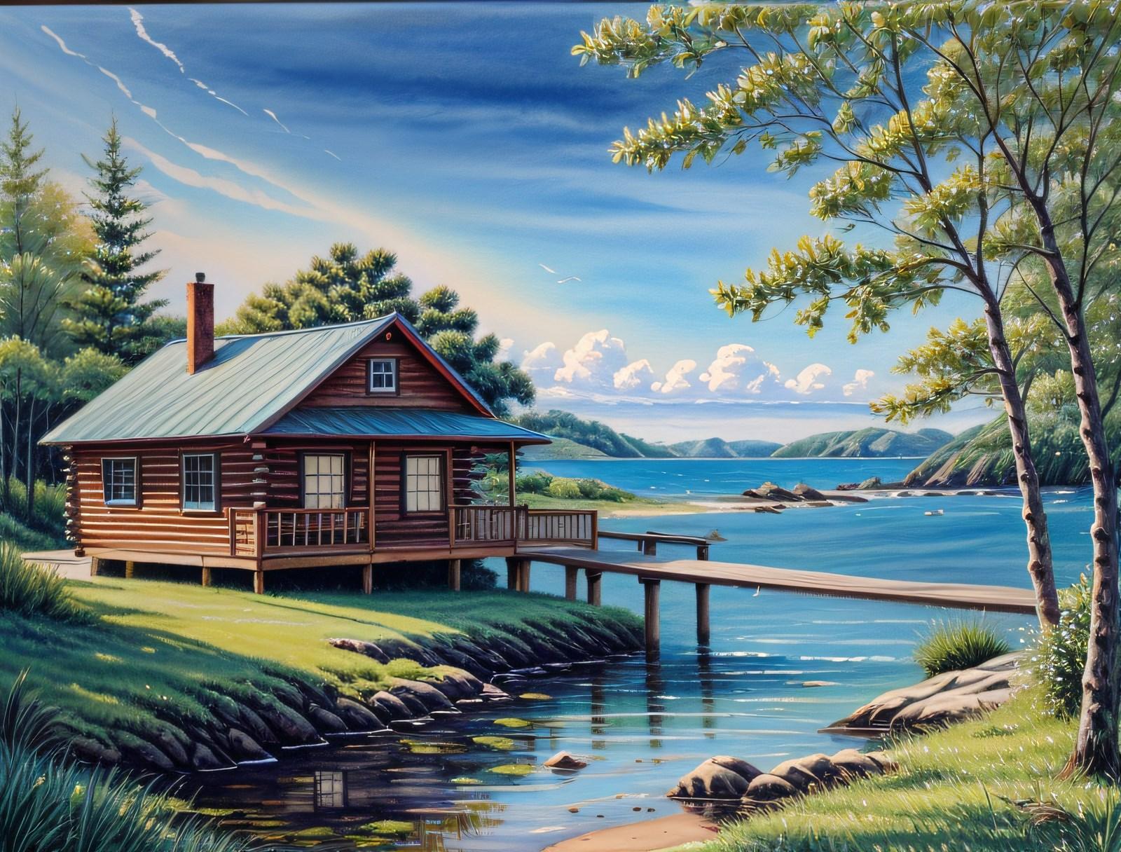 湖畔(絵画風)