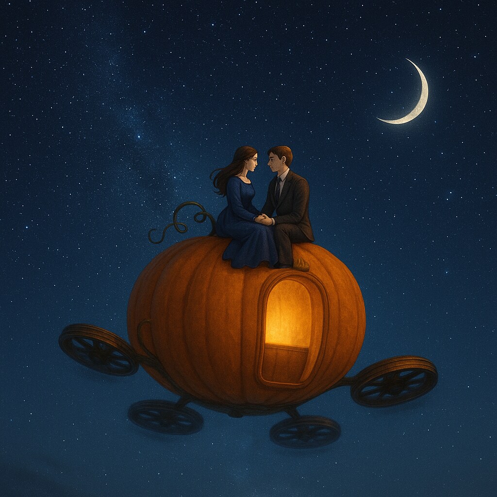 星空でかぼちゃの馬車で見つめ合う男女二人