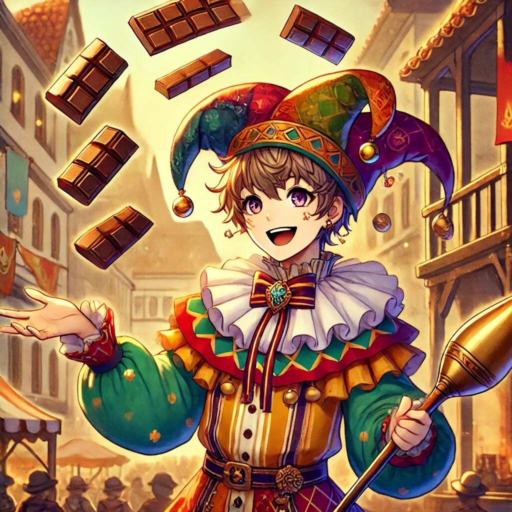 彼女はただの道化師ではなく、魔法のジャグリングでチョコレートを増やすことができるトリックスター。