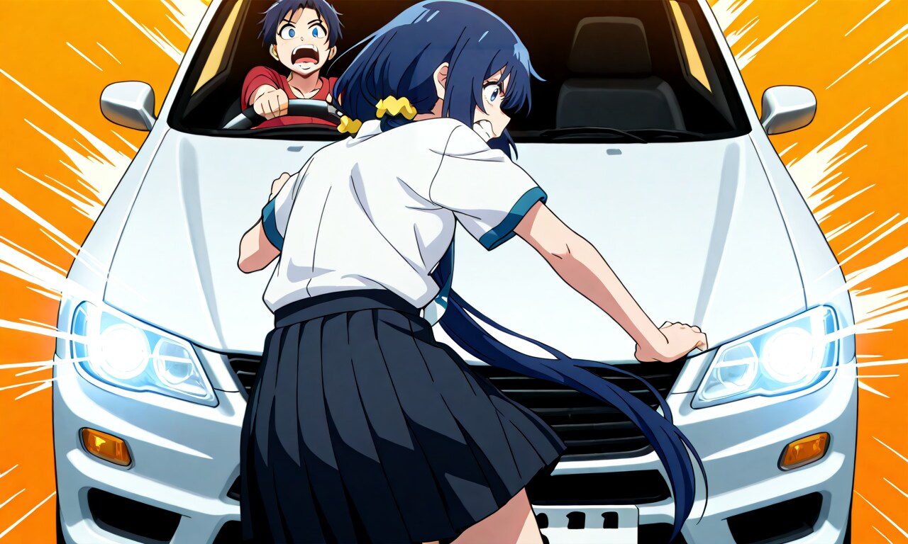 画像の流れを意識せずバラバラに作っていたのですが、繋げると暴走車を止めて去っていったみたいな感じになりました。