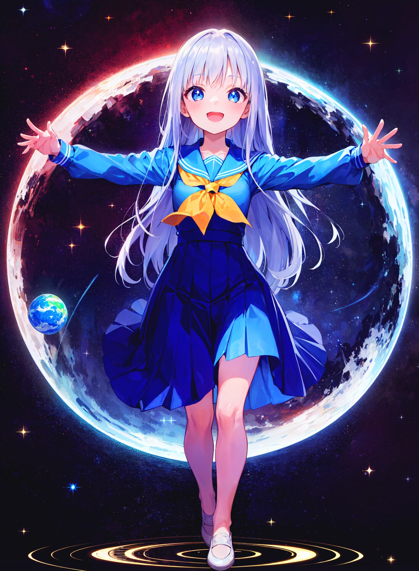 うちの子恒例の星空とプロンプト「colored beutiful planets」を中心に作ってみました。