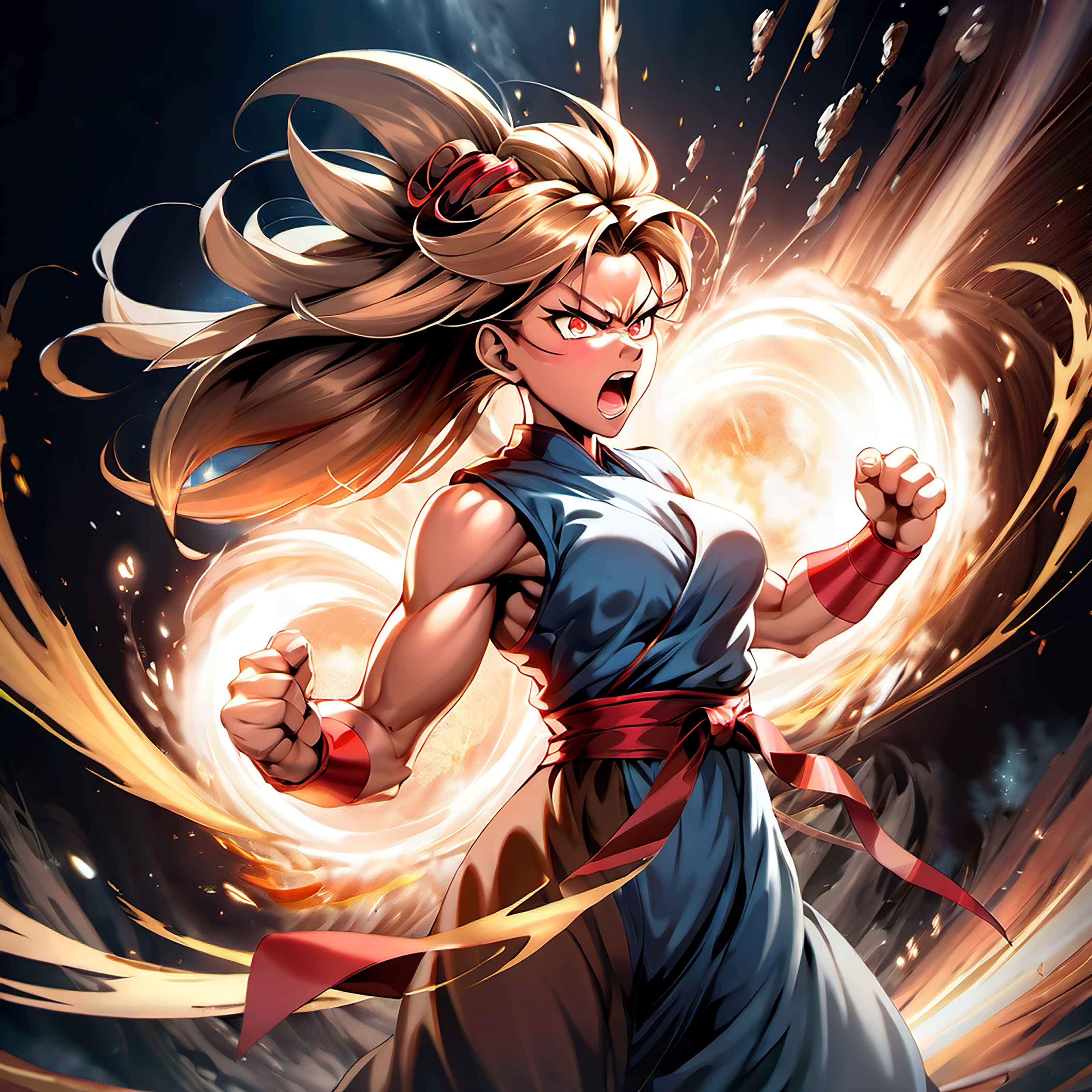 プロンプトに (hadouken:1.4) を入れたらこうなりました
