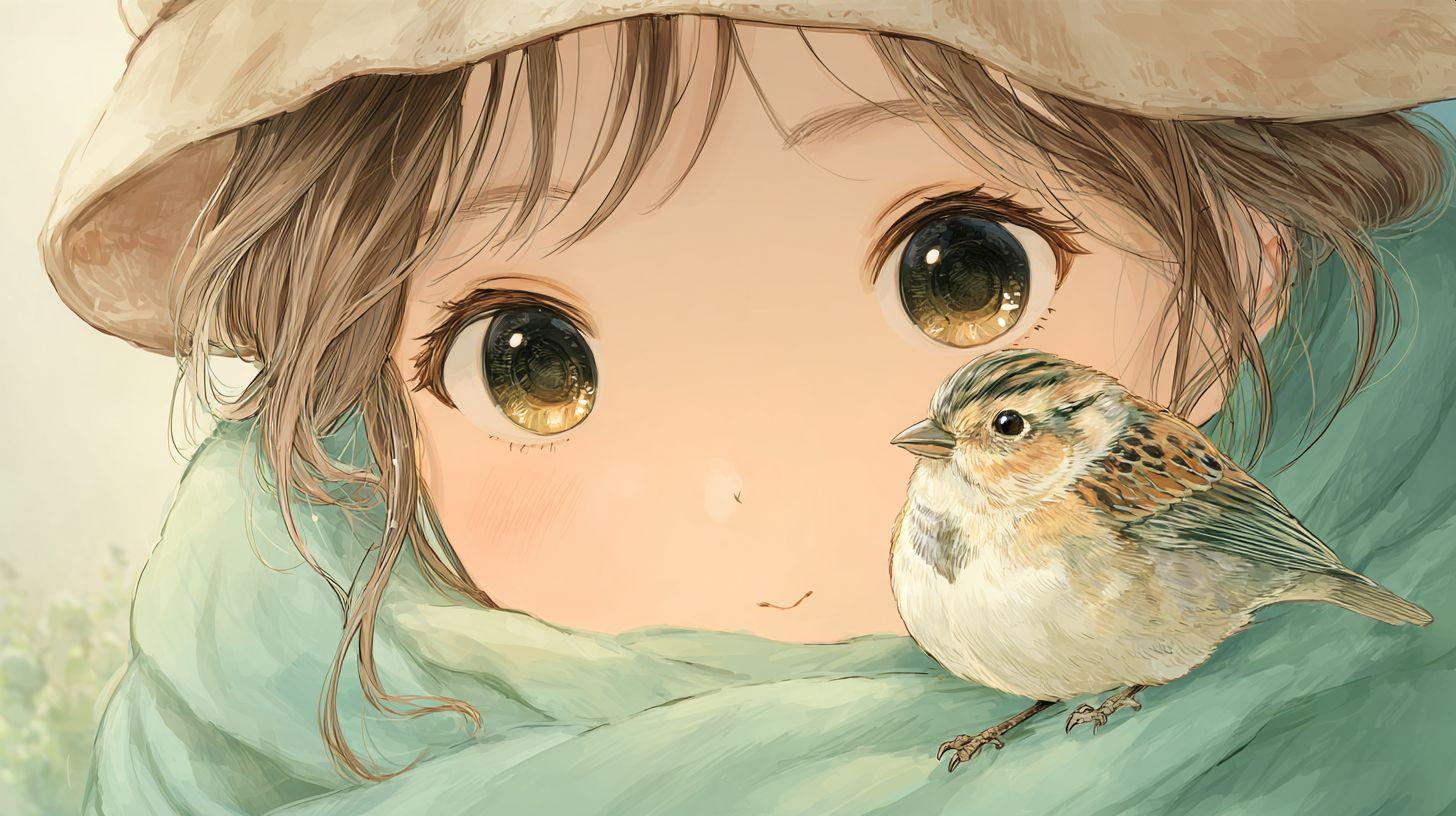 女の子と小鳥