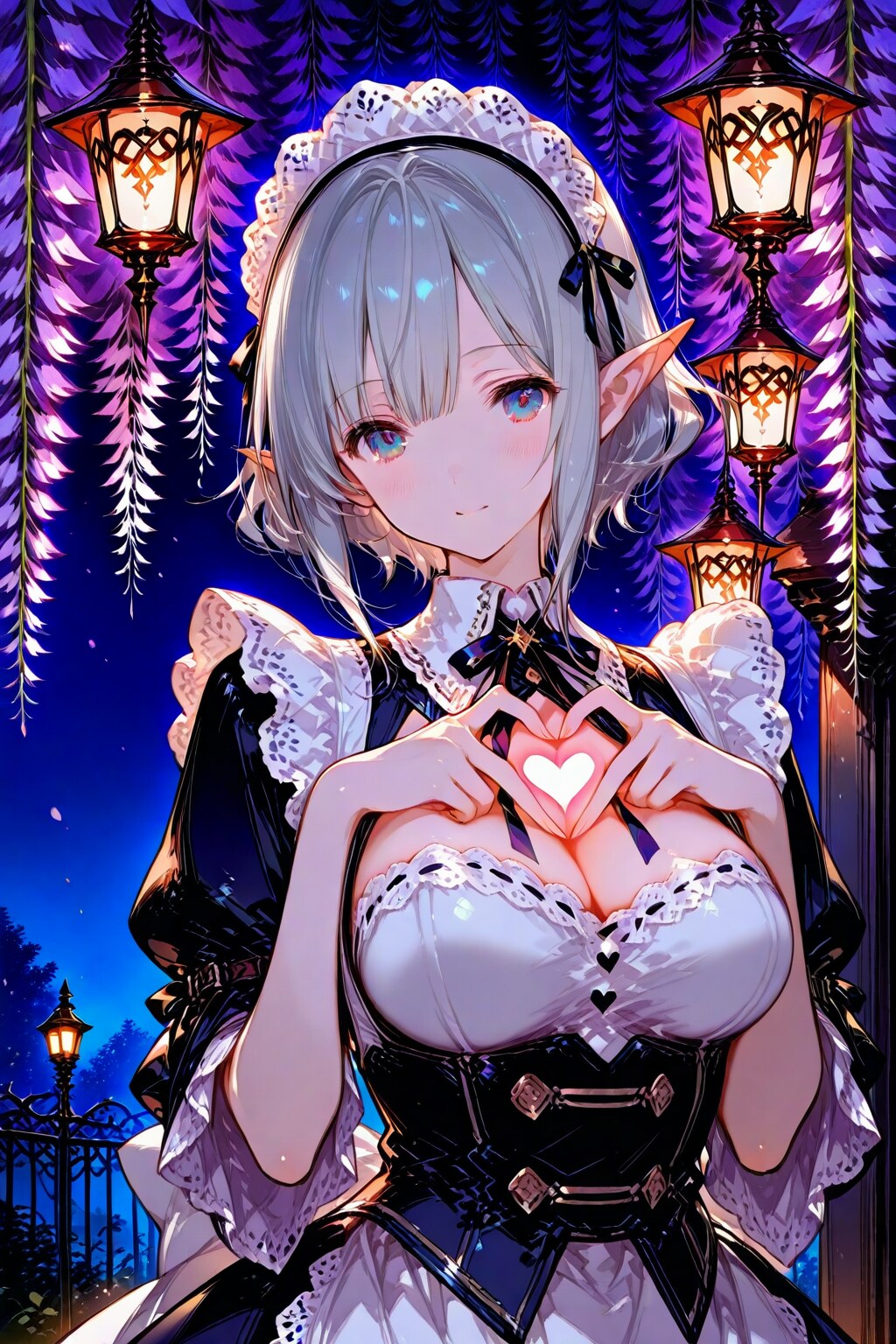夜空の下、光の藤がふわっと揺れる。