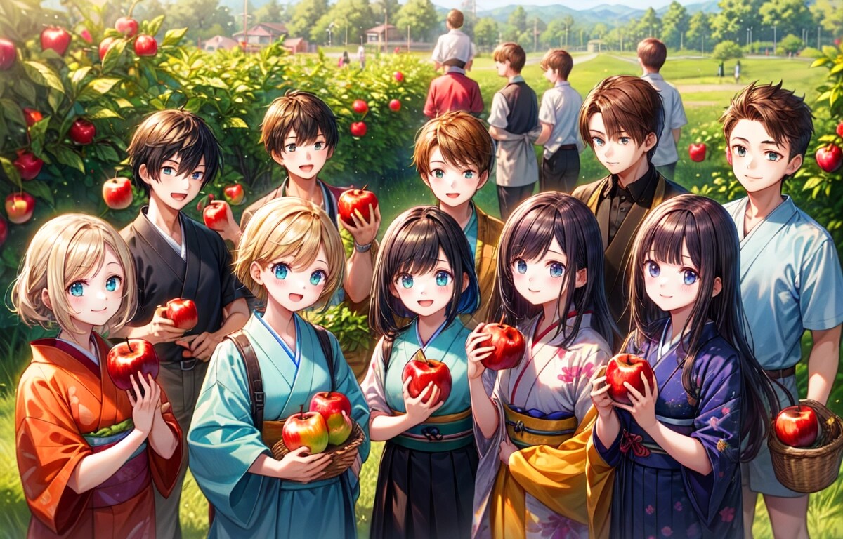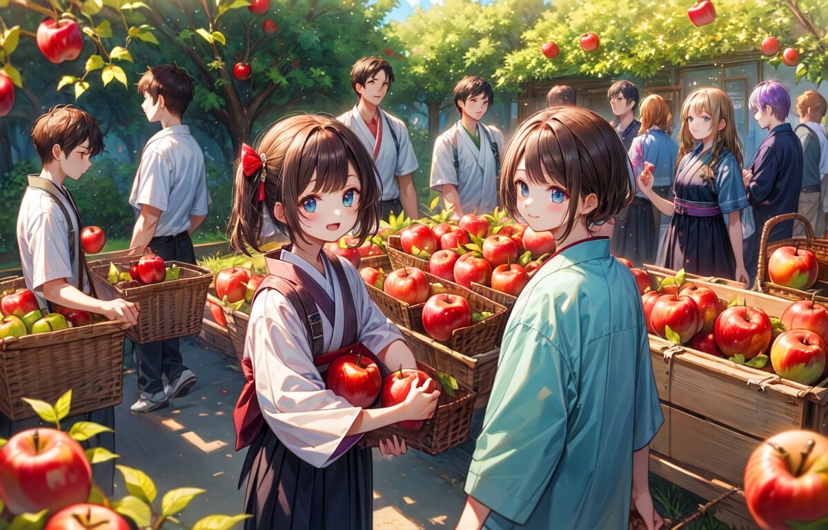 ではりんご狩りをしてる、レトロモダン街の少年少女をご覧下さい!!