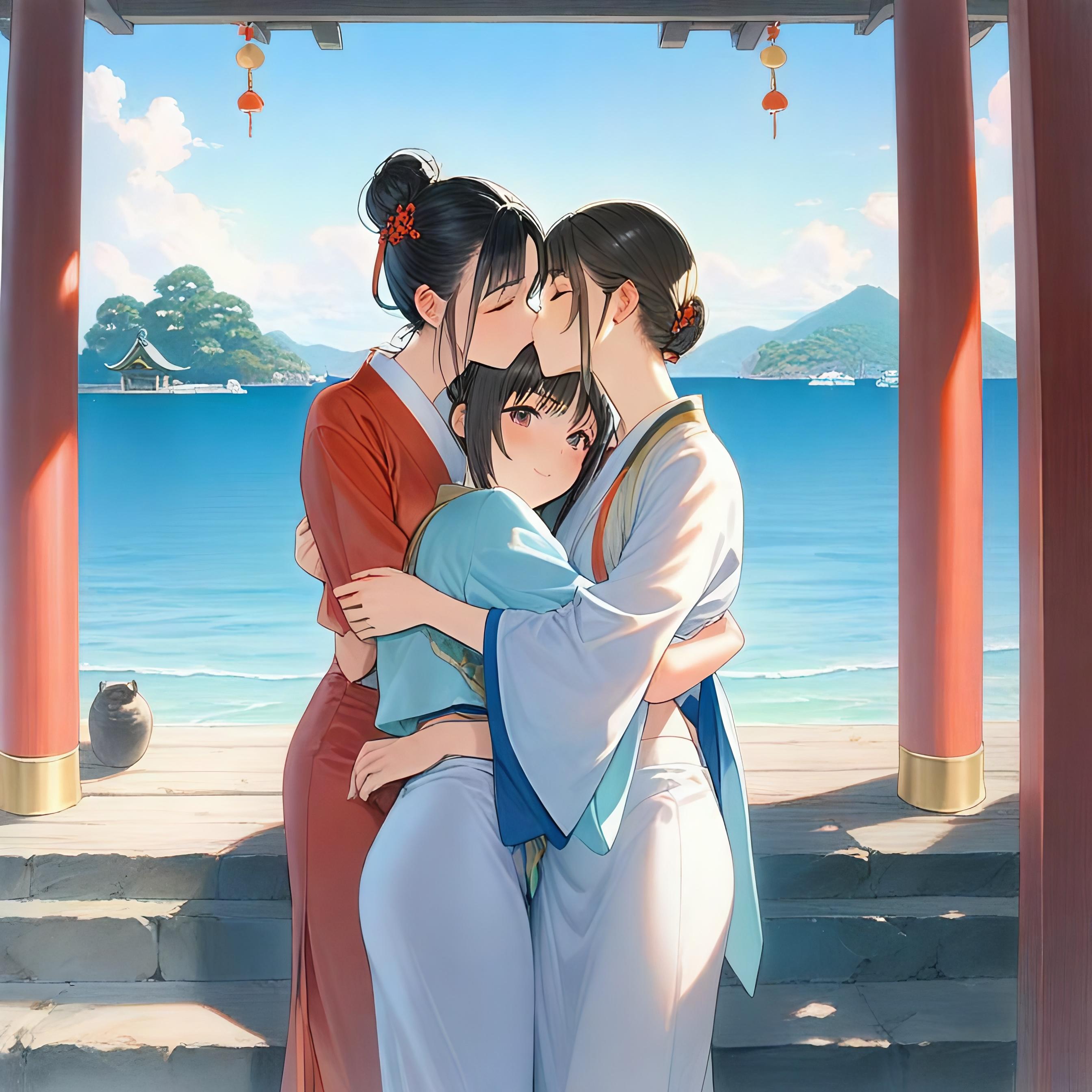 宗像三女神をイメージ。きっとGLだったら美しかったろうと罰当たりなことを考える。でも、日本の神様って人間っぽいし色っぽい話もいっぱいあるし、いいんじゃなかろうか。