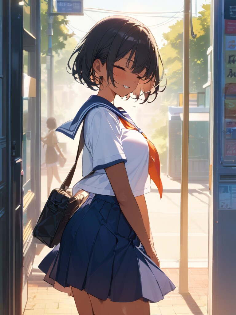 夏休み明けに登校すると日焼けした姿がまぶしい。ちょっと恥ずかしがってますが。