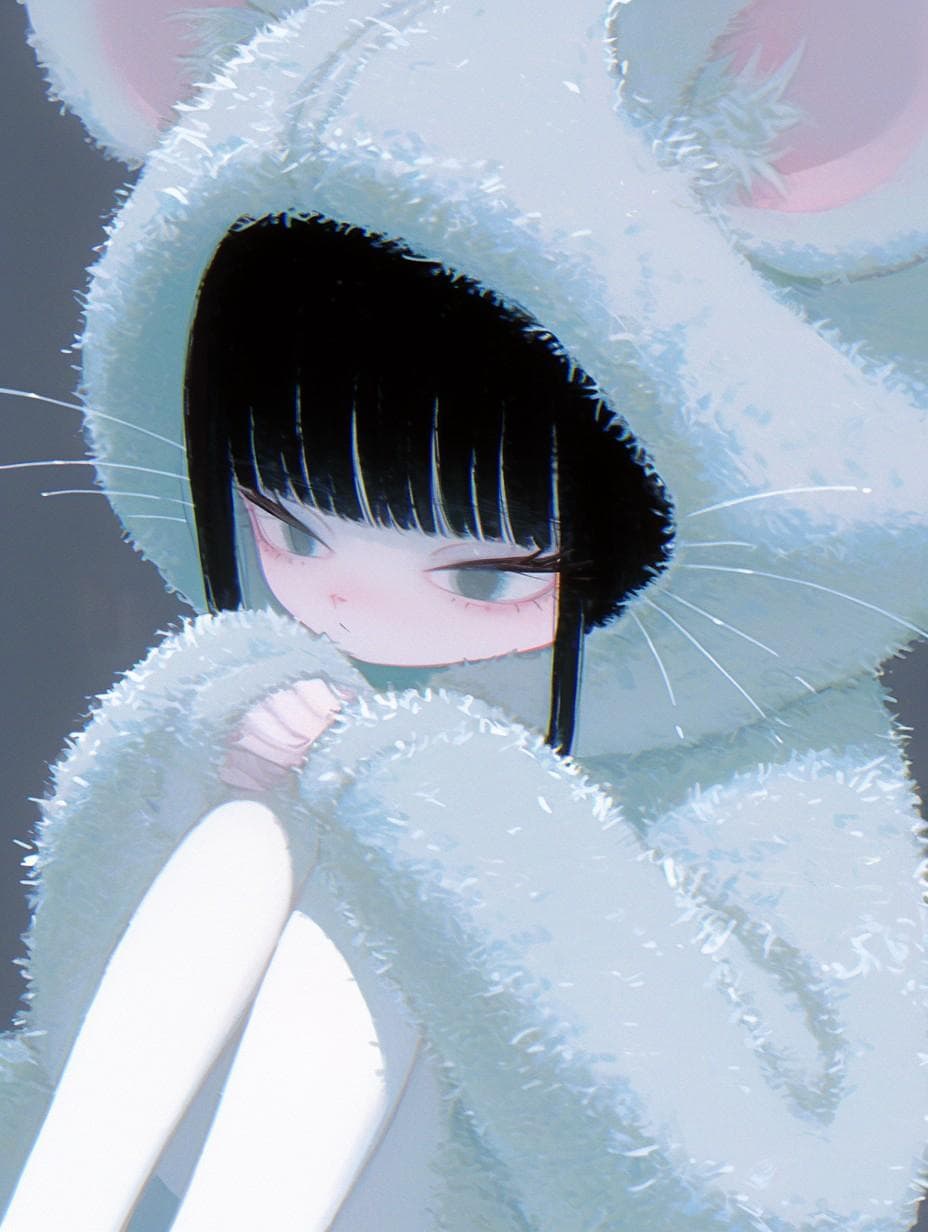 モフモフがテーマでしたので、モッフモフな上着を着てるねず耳ちゃんにしてみました!