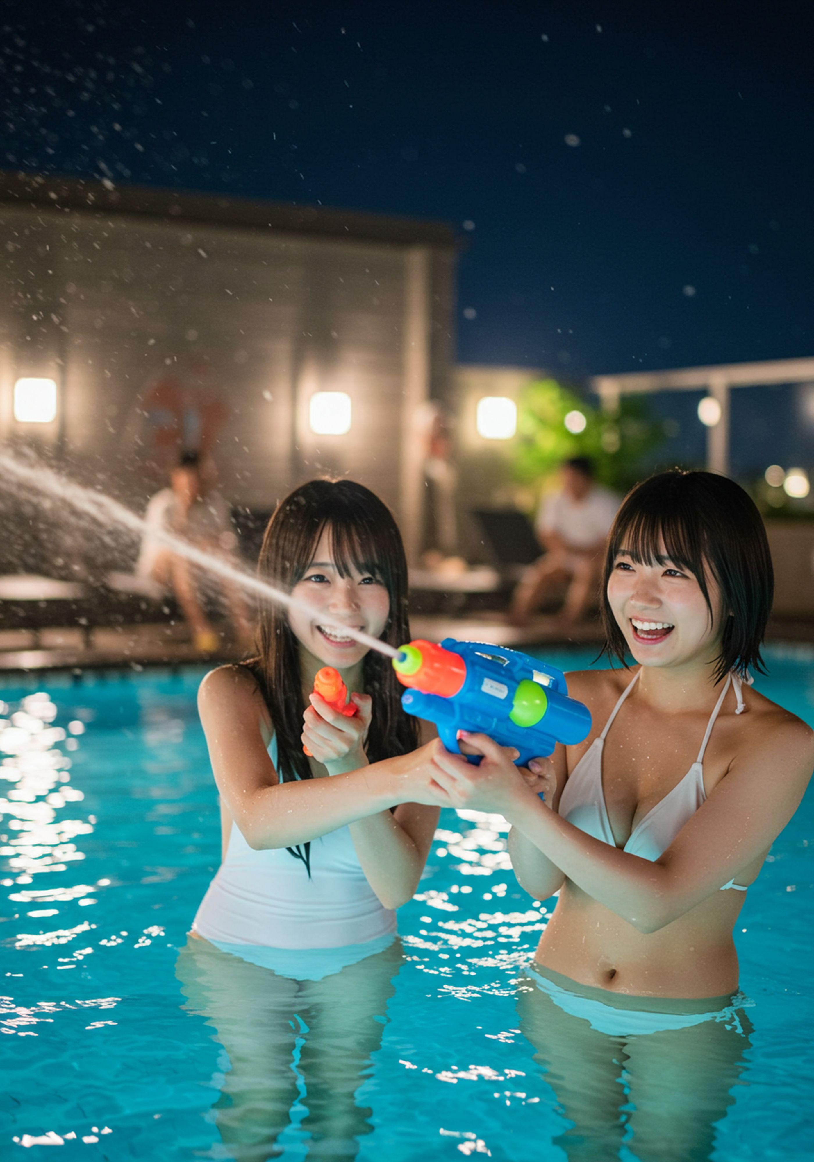 ナイトプールでウォタガン大会
