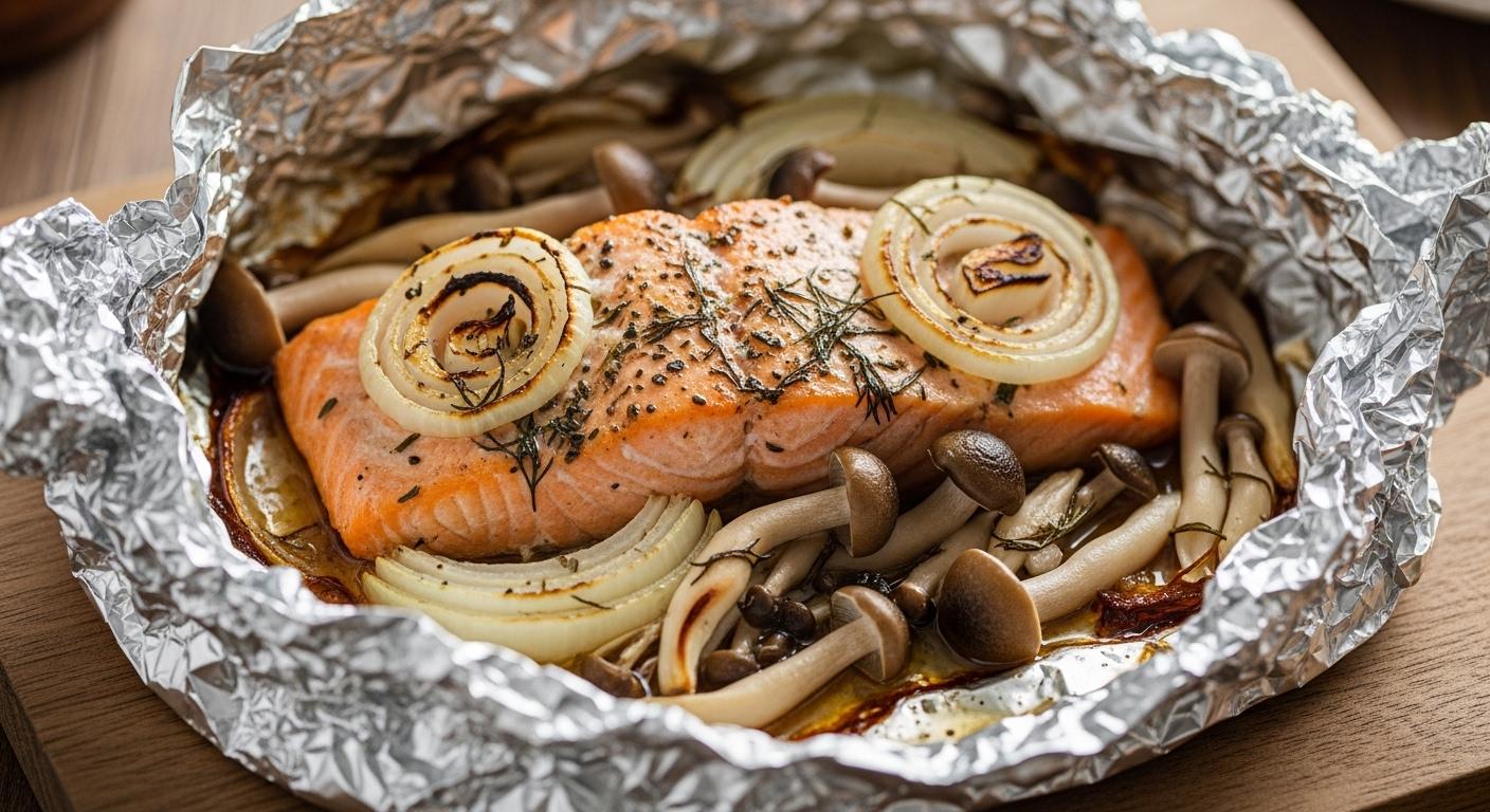 おかかたまねぎと、鮭としめじとたまねぎのホイル包み焼きをどうぞ