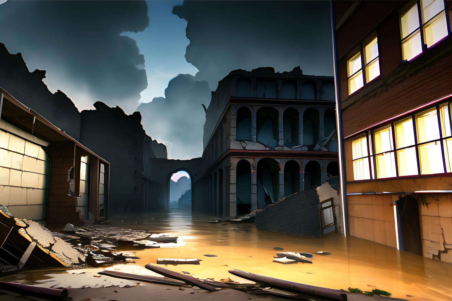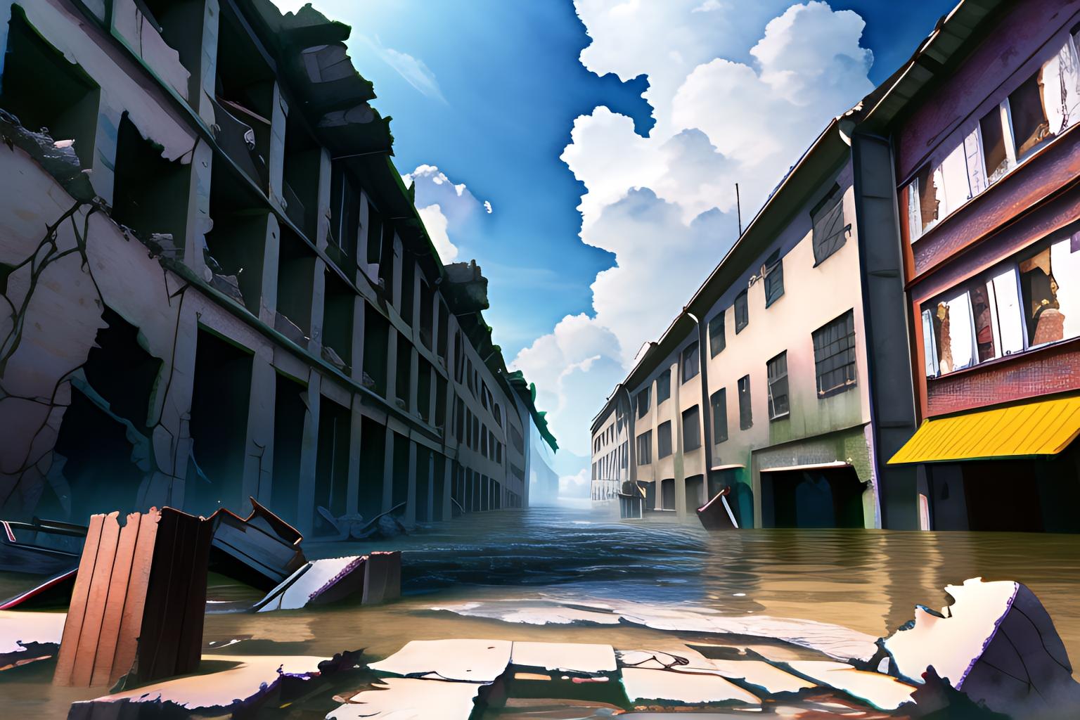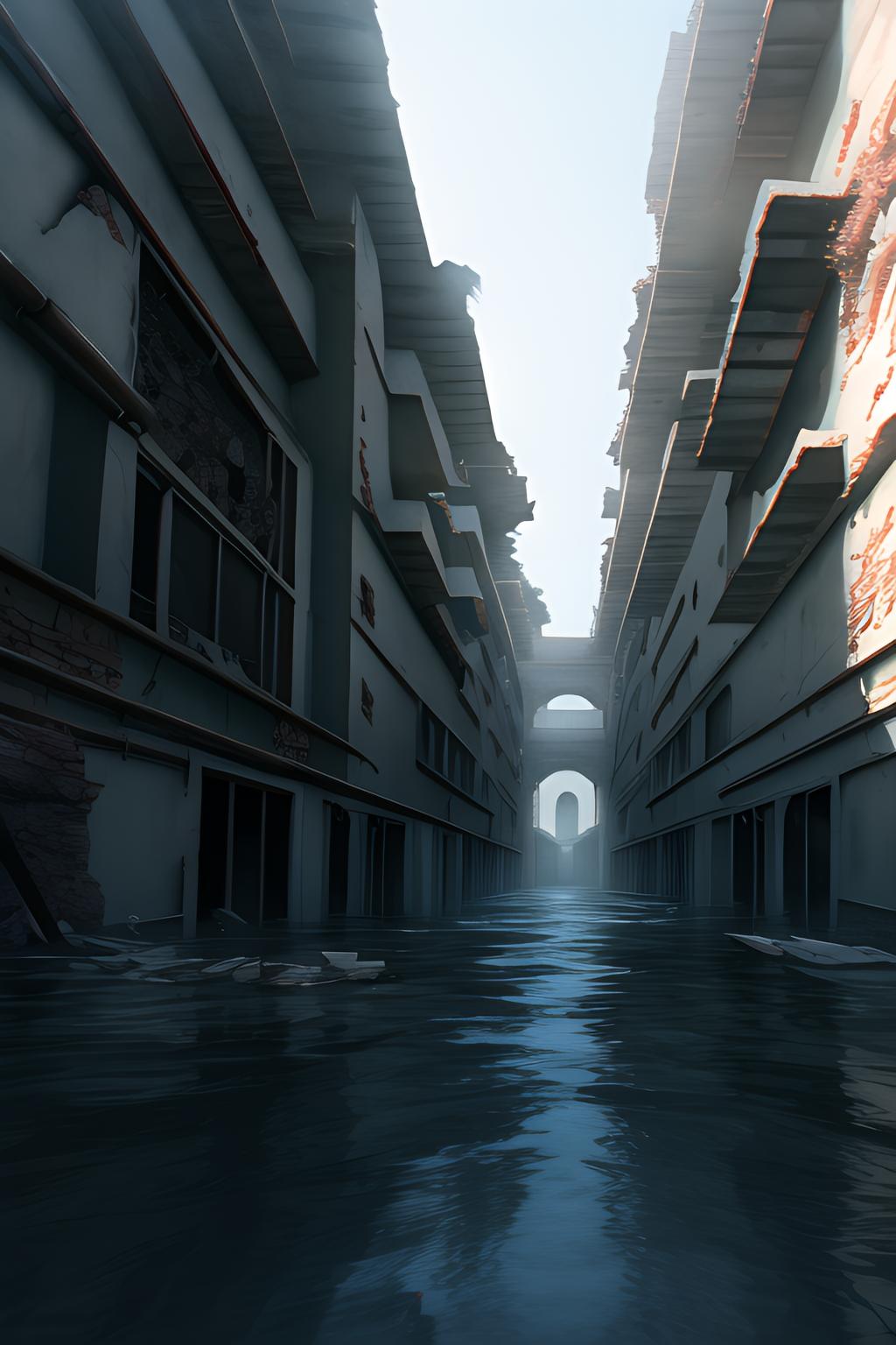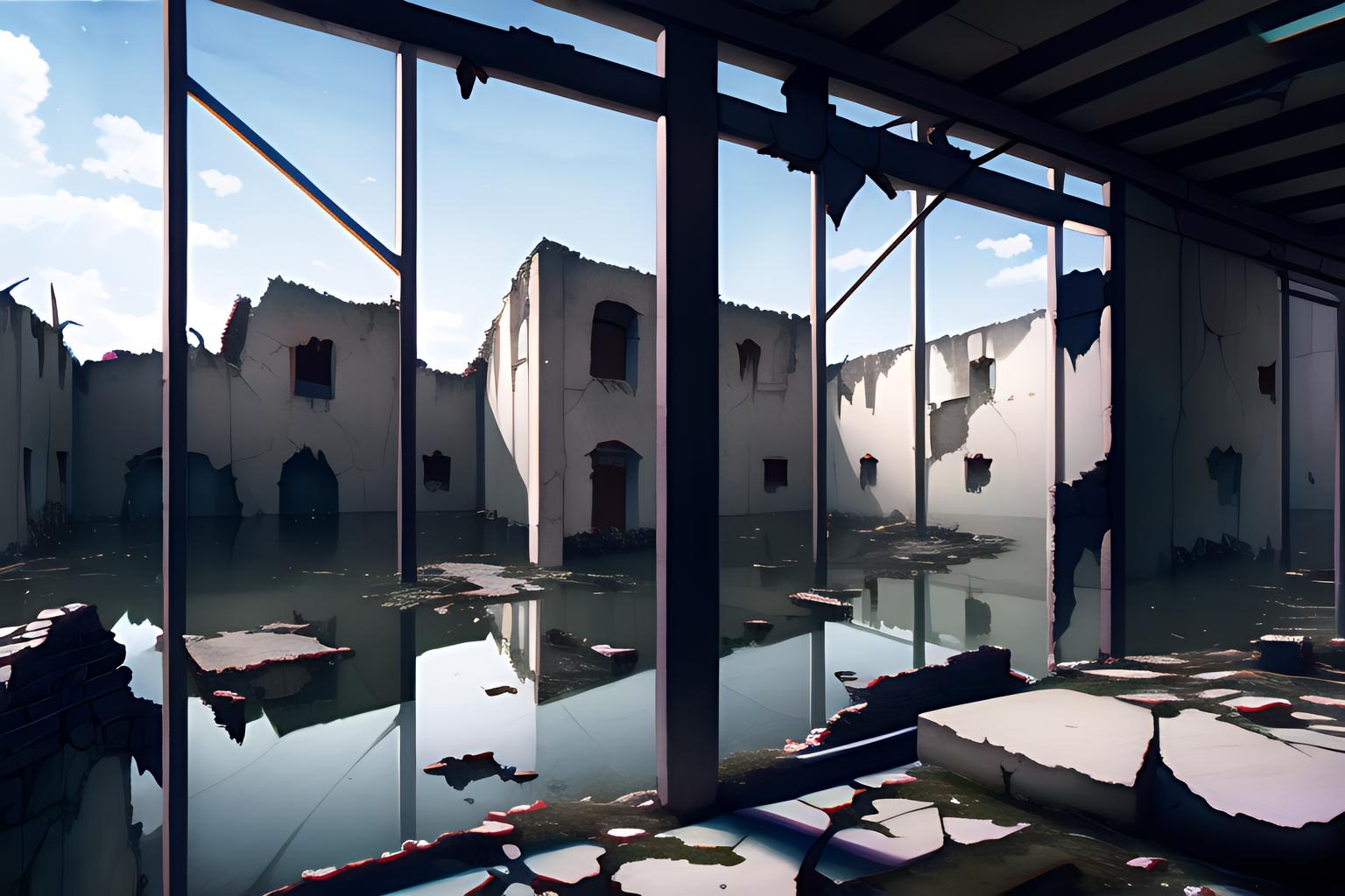 OKな背景(浸水した廃墟の街)
