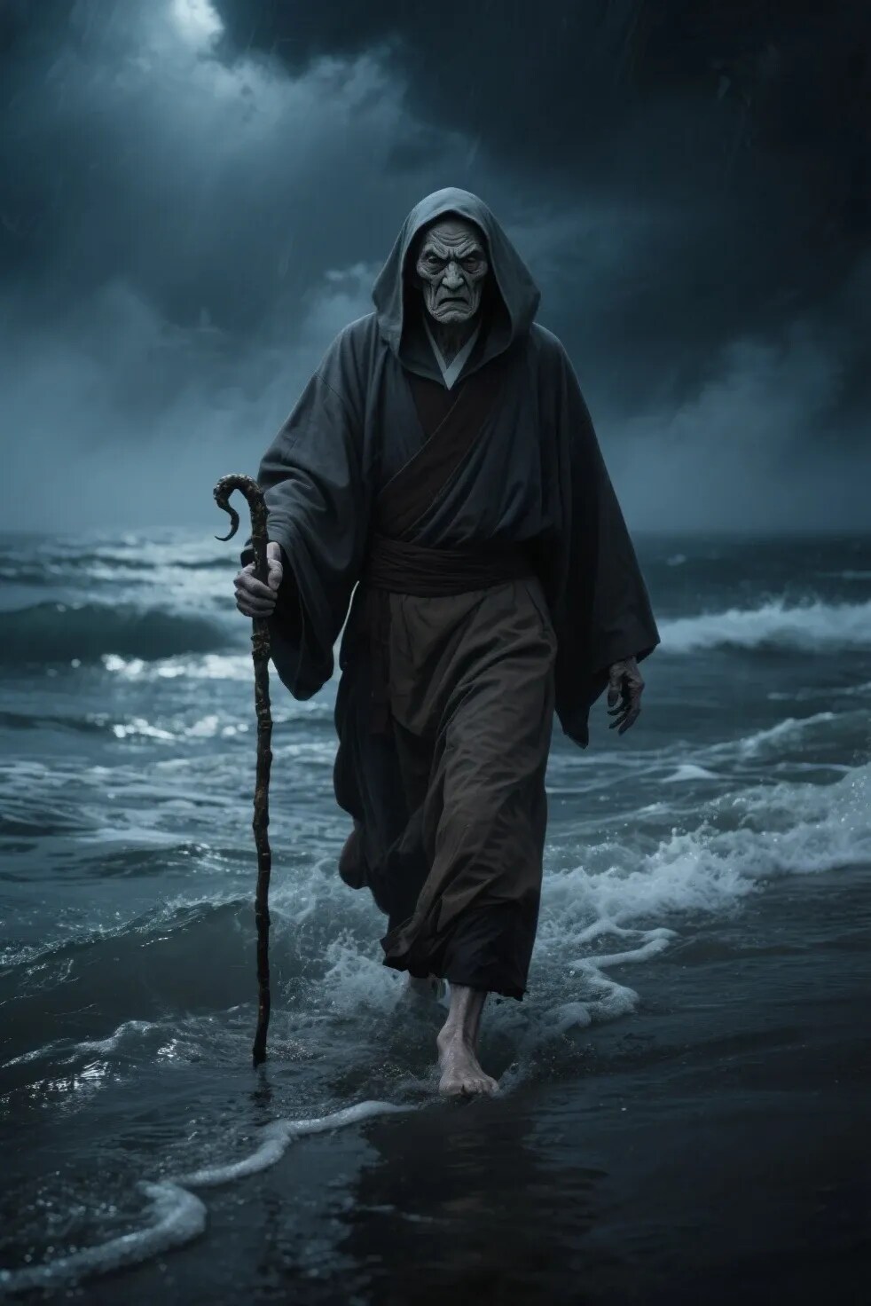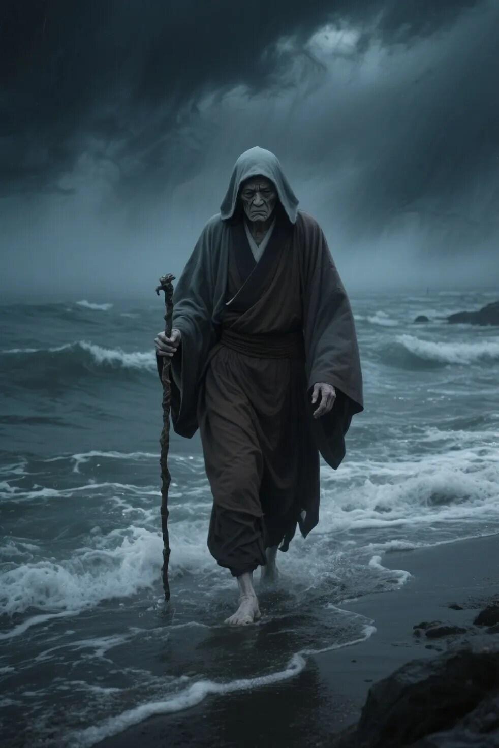 主に伊豆諸島に伝わる怪談。江戸時代、島民を苦しめて憎まれていた悪代官がいた。島民達は悪代官を懲らしめるため、わざと海が荒れる日を選んで島巡りをするように勧め、悪代官はまんまと言われた通りに海に出て波に呑まれて死んだ。それ以来、毎年旧暦の1月24日になると島民を恨む悪代官の霊が海難法師となって島々を巡るのだという。