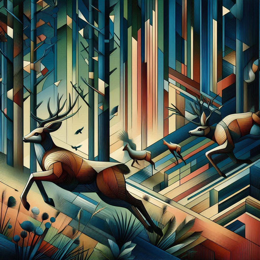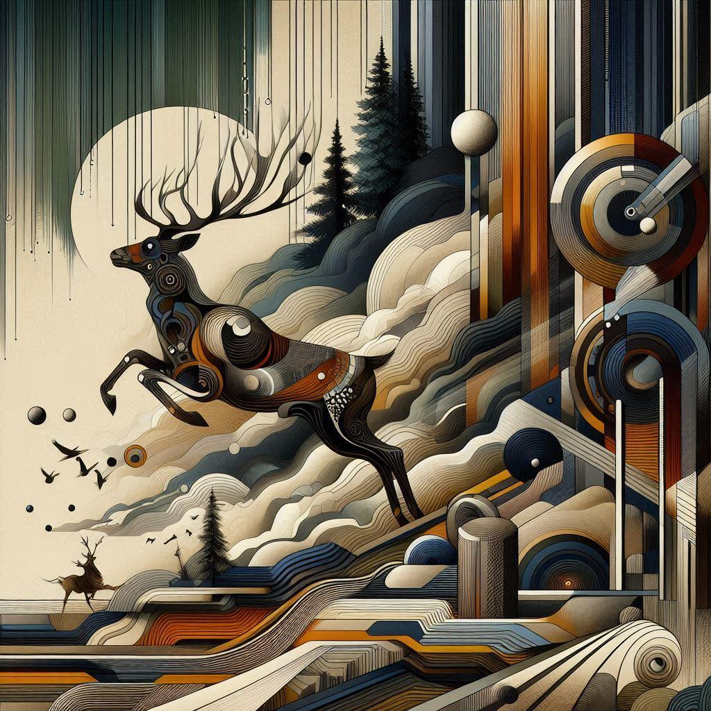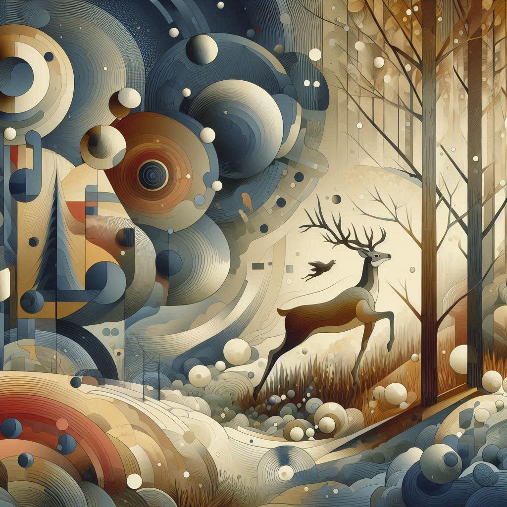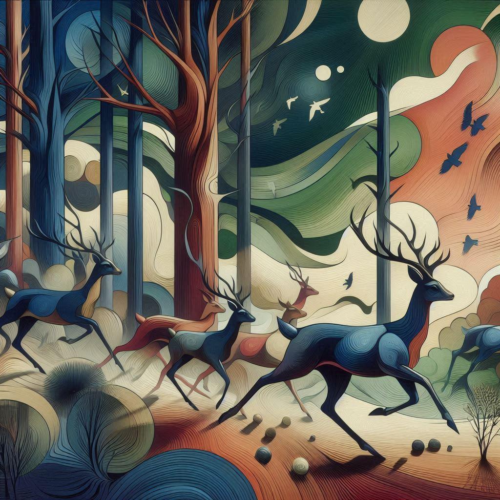ギュスターヴ・クールベ作・聞き耳を立てている追われる鹿 を意識して作りましたが、どうしても聞き耳を立ててくれませんでした。逃げるだけで