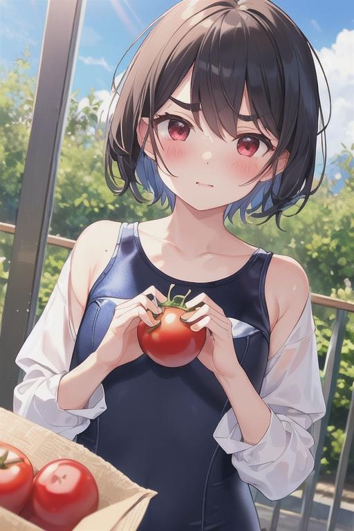 トマトに水着、可愛いけど、野菜が霞んでしまうのは許されないねぇ。