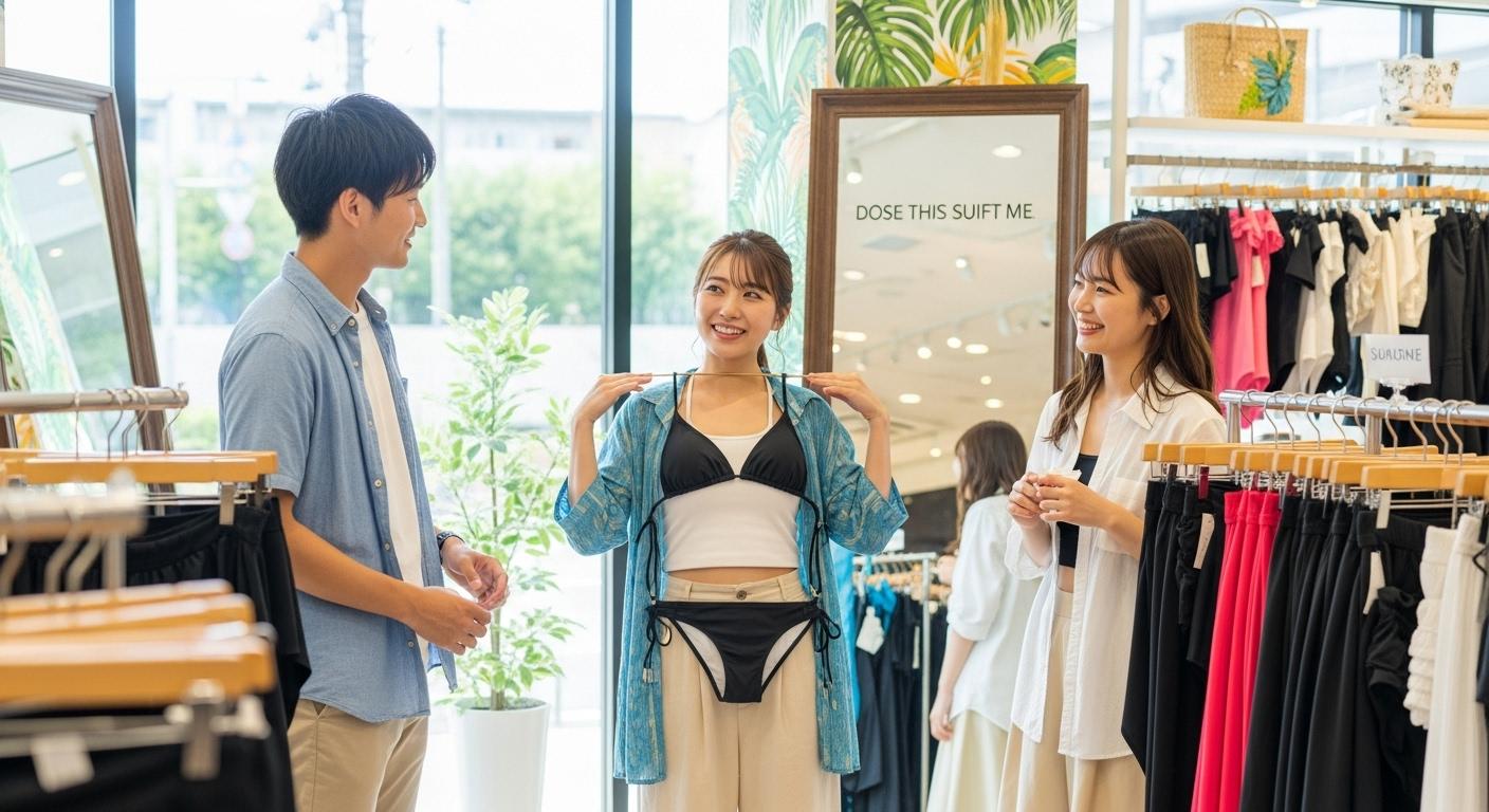 女1「水着も買いたいわ。どんな水着が私に合うか教えて」
