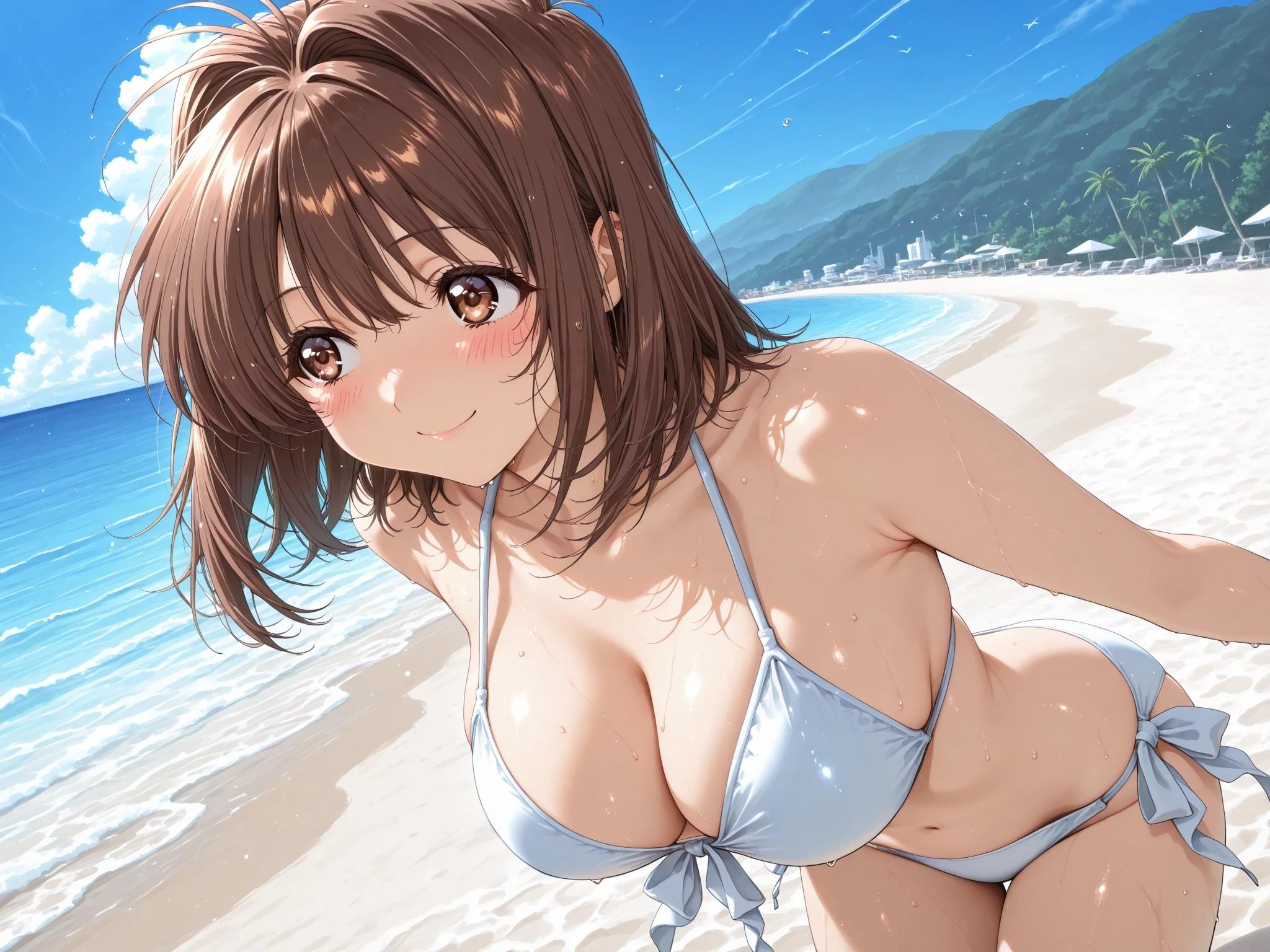 陽射しに包まれた彼女は、白いビキニを揺らしながら夏の午後を楽しんでいた。