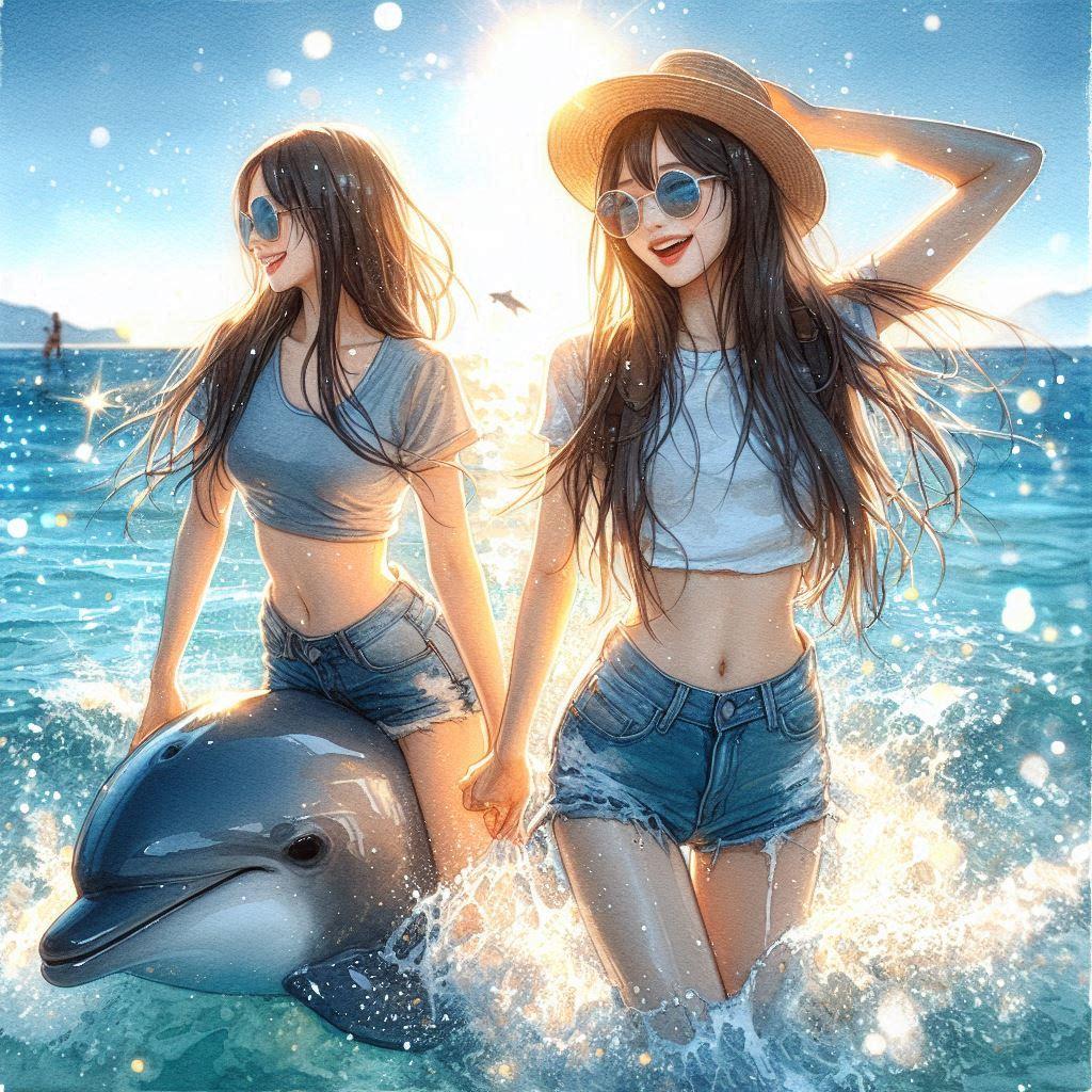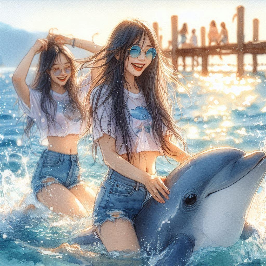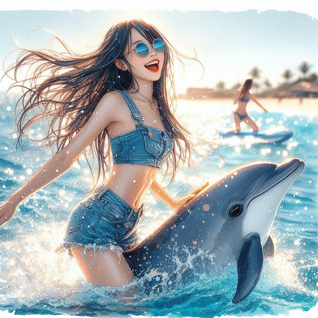 イルカボートのはずが本物イルカに乗りました︎︎✨